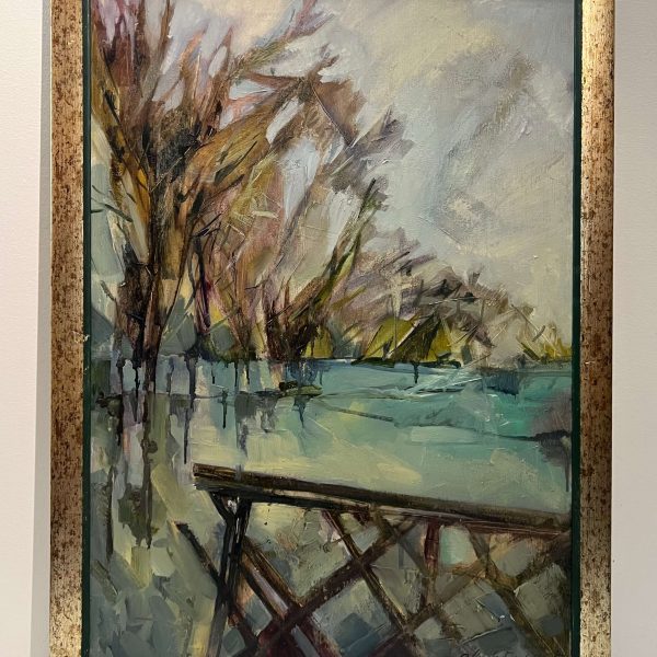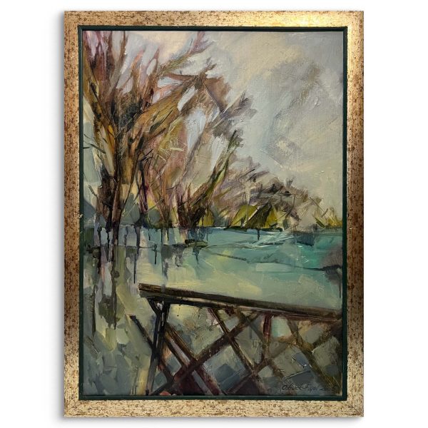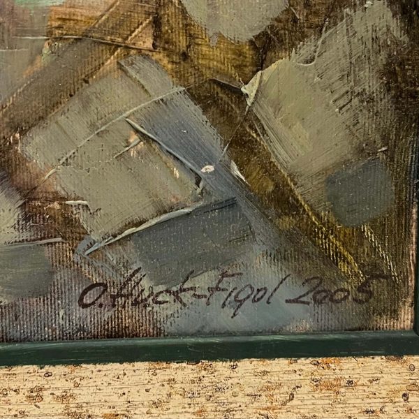 Nagyon kellemes színvilágú, modern kortárs alkotás Olga Huck-Figol (1961- ) ukrán festőművésztől 2005-ből hozzáillő keretben, azonnal falra akasztható állapotban.