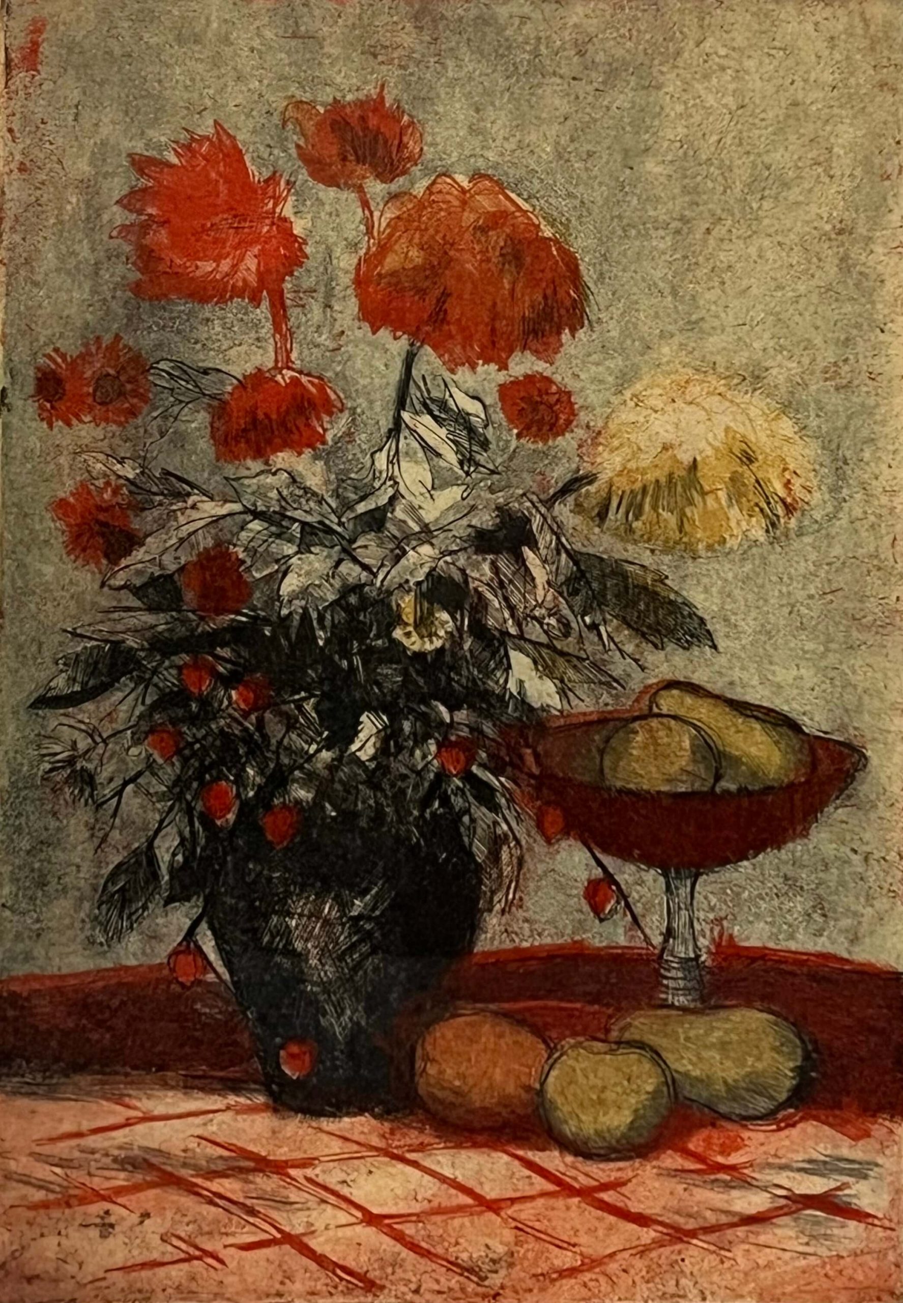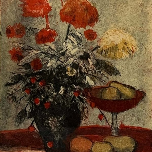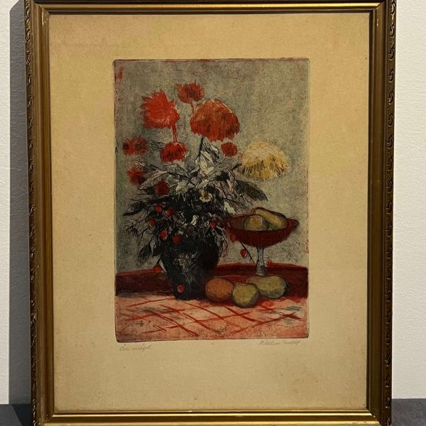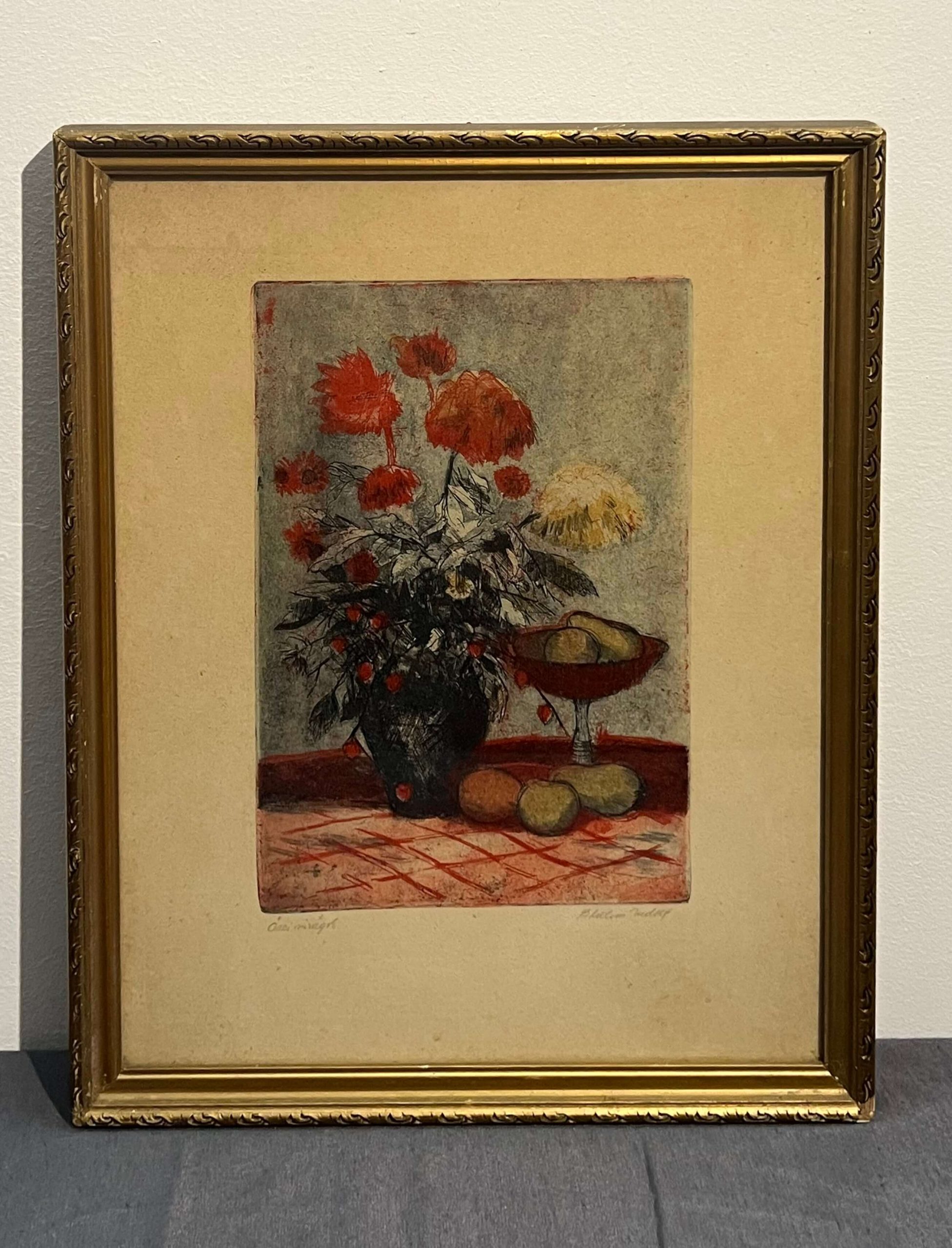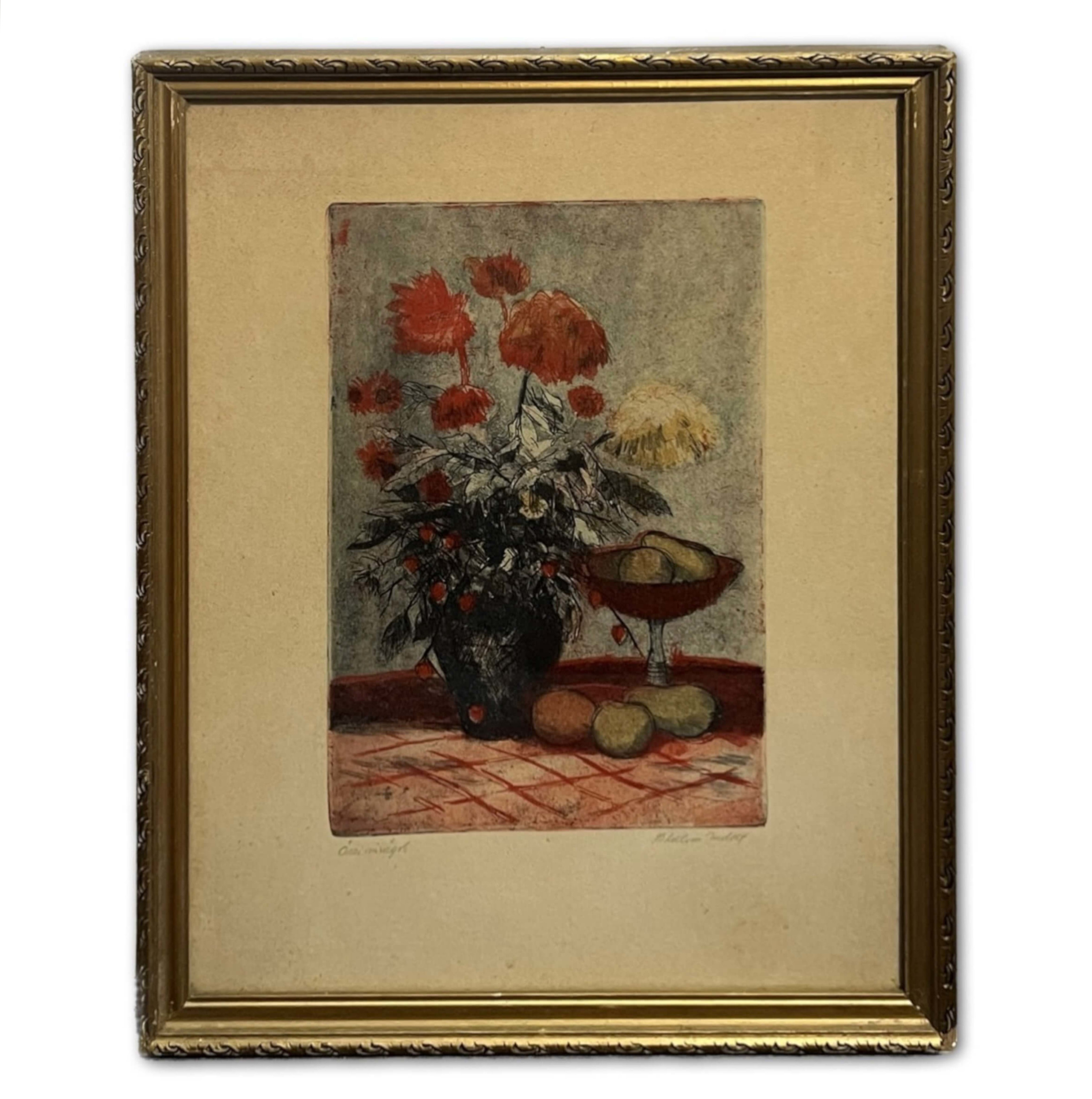 Csodálatosan elkészített csendélet Blahos Rudolf (1917-1986) híres magyar festő, grafikustól szép, üvegezett, antik keretben, azonnal falra akasztható állapotban.
