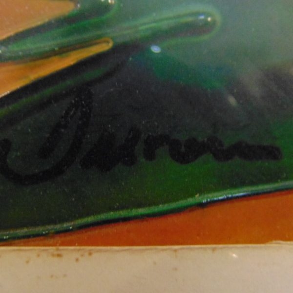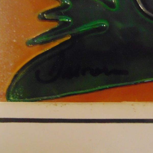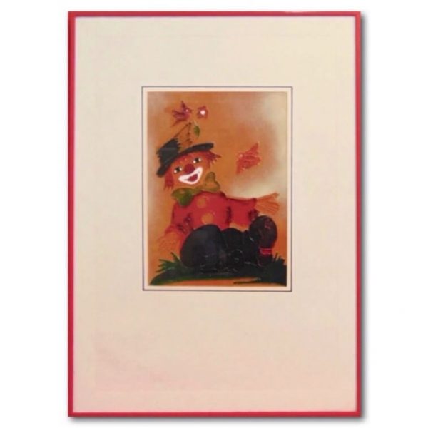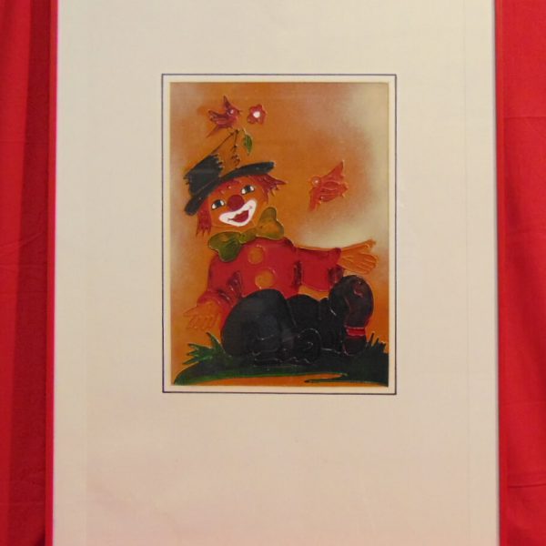 Gyerekszobába való szépen elkészített, kedves kis alkotás (üvegfesték műanyaglapon) üvegezett keretben, azonnal falra akasztható állapotban! Balra lent található a művész szignója, de nem sikerült még beazonosítani.