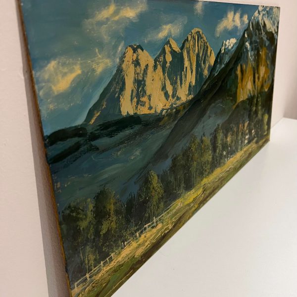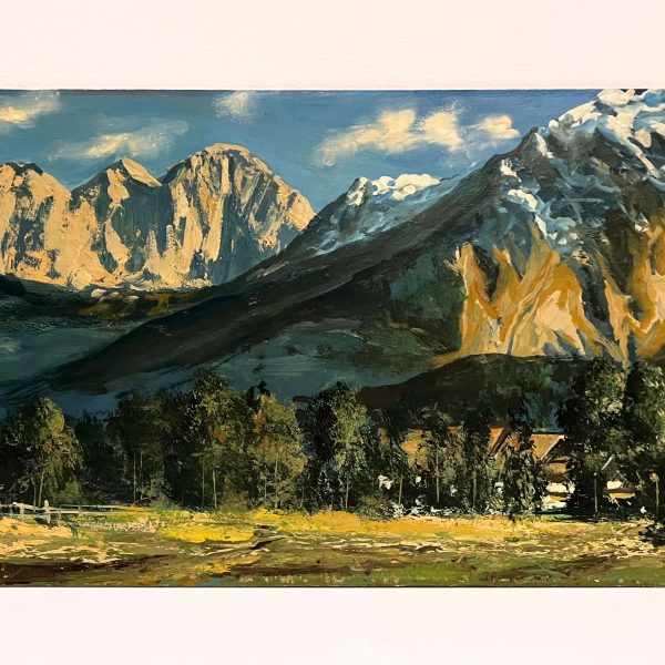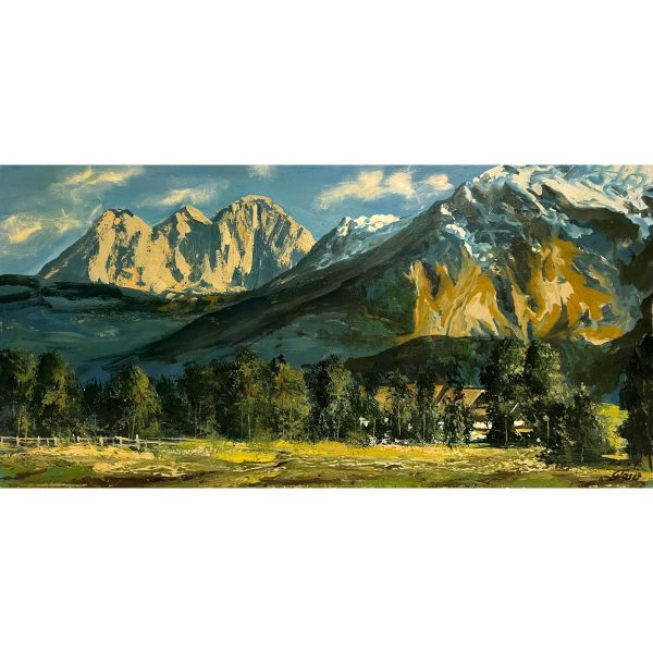 Kvalitásos, nagyon szépen megfestett alpesi látkép ábrázolás a 2000-es évekből, melyet jó színek és jó technika jellemez! A művészt egyelőre még nem sikerült beazonosítani, de dolgozunk rajta! Igazi gyűjtői – befektetői darab! Gyönyörű lakásdísz!