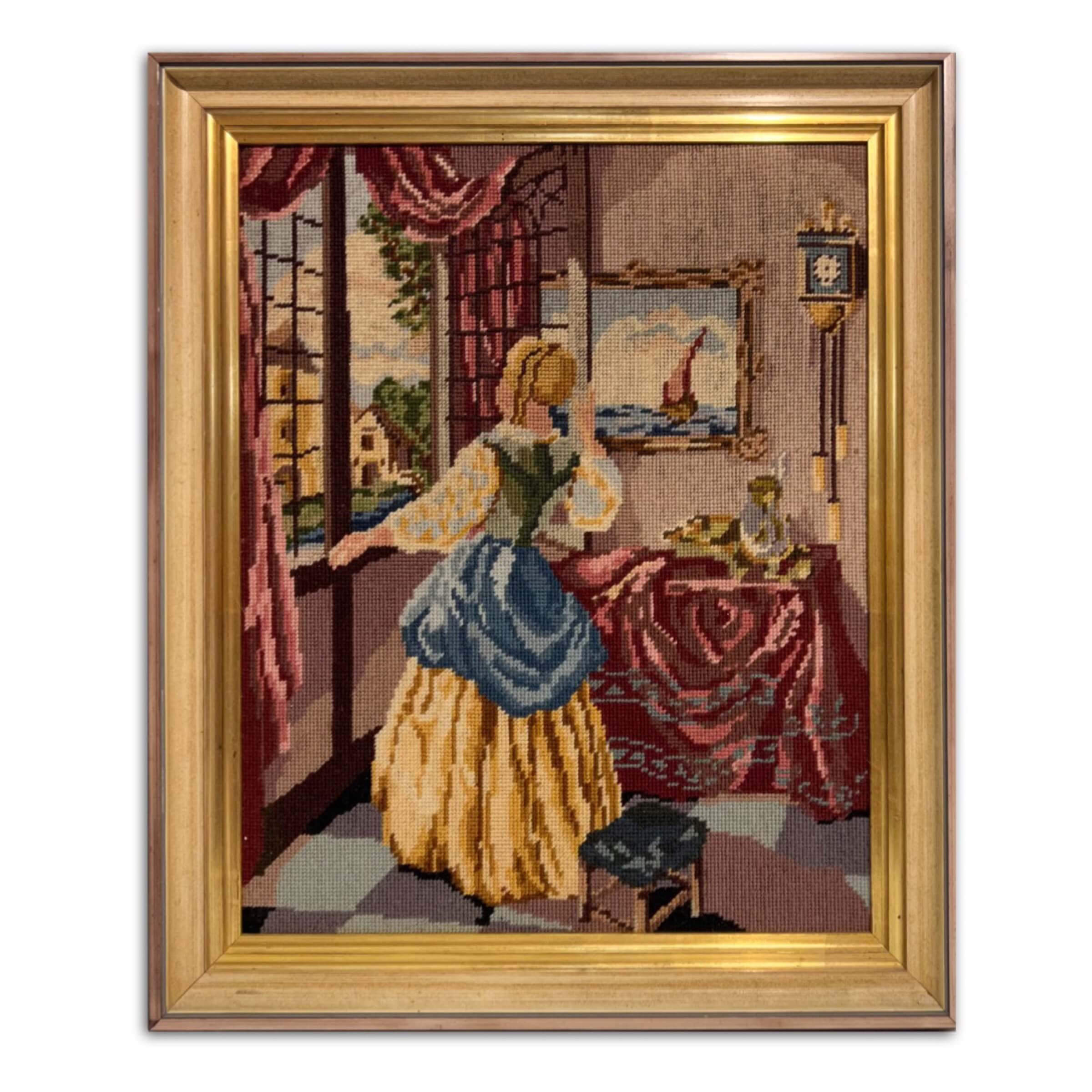 Hímzés. Gyönyörű színvilágú és minőségű gobelin munka szépen keretezve, azonnal falra akasztható állapotban!