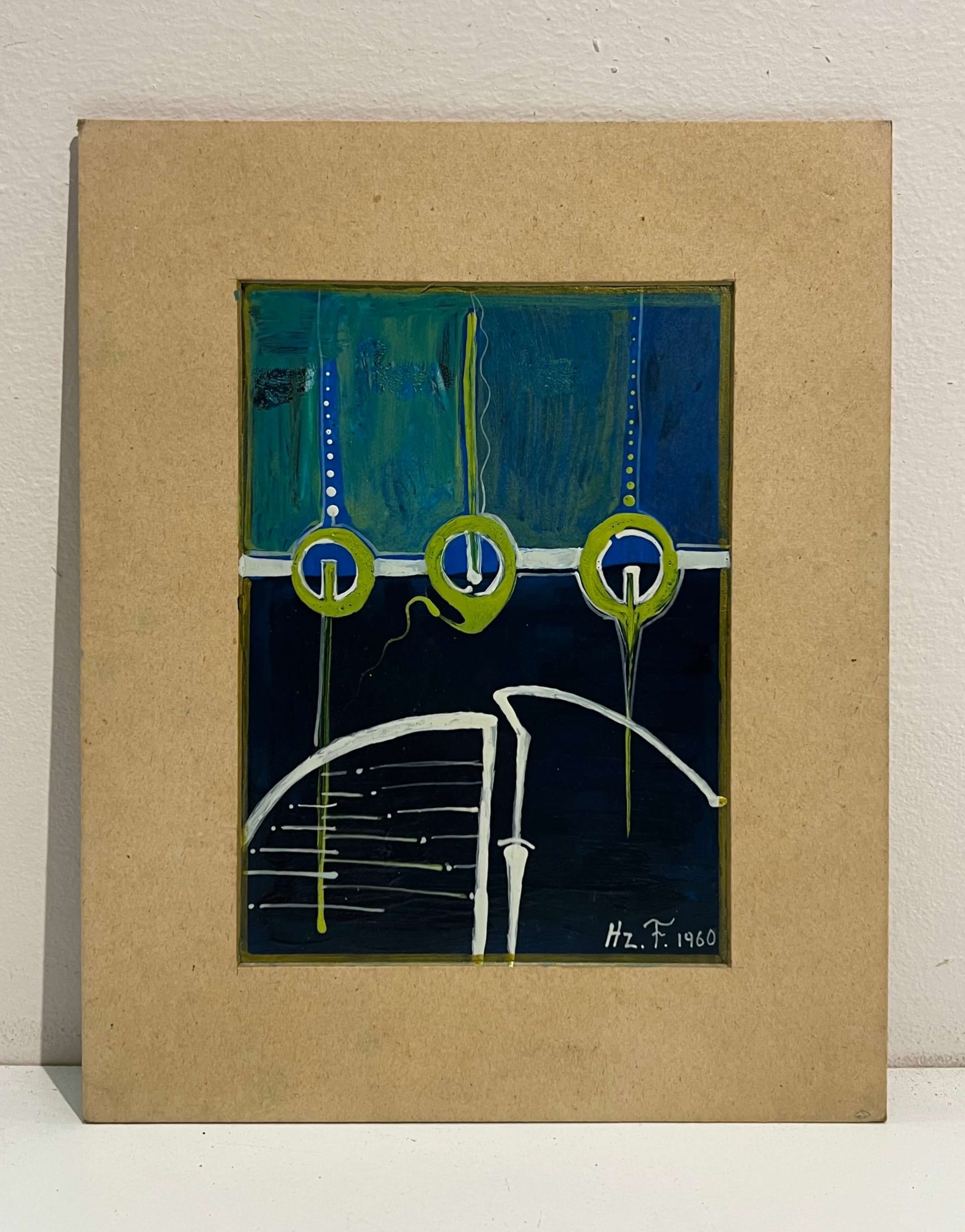 Extra kvalitásos, nagyon modern absztrakt ábrázolás 1960-ból kellemes színvilággal és kiváló technikával megfestve, amely csak egy hozzáillő, jó keretezésre és persze egy műértő gyűjtőre-befektetőre vár! A művész beazonosítása folyamatban van!
