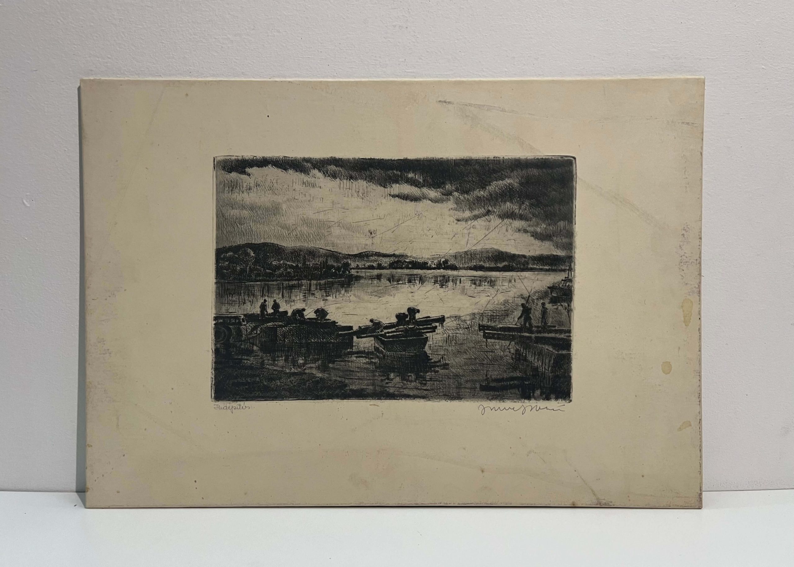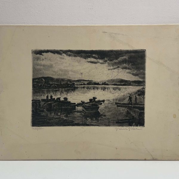 Igényesen elkészített szocreál grafikai alkotás (rézkarc) id. Imre István (1918-1983) híres magyar festő, grafikustól, amely egy hozzáillő, paszpartus keretezést igényel.