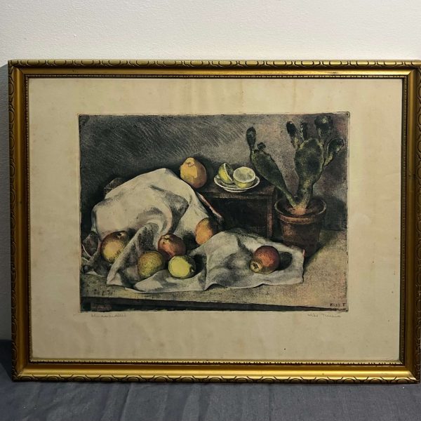 Gyönyörű színezett sokszorosított grafikai munka Kiss Terézia (1928- ) híres magyar grafikustól szépen keretezve (és üvegezve), azonnal falra akasztható állapotban, gyűjtőre várva.