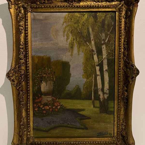 Régi, szépen megfestett látkép ábrázolás magyar művésztől 1933-ból hozzáillő, antik keretben, azonnal falra akasztható állapotban. A művész beazonosítása folyamatban van!