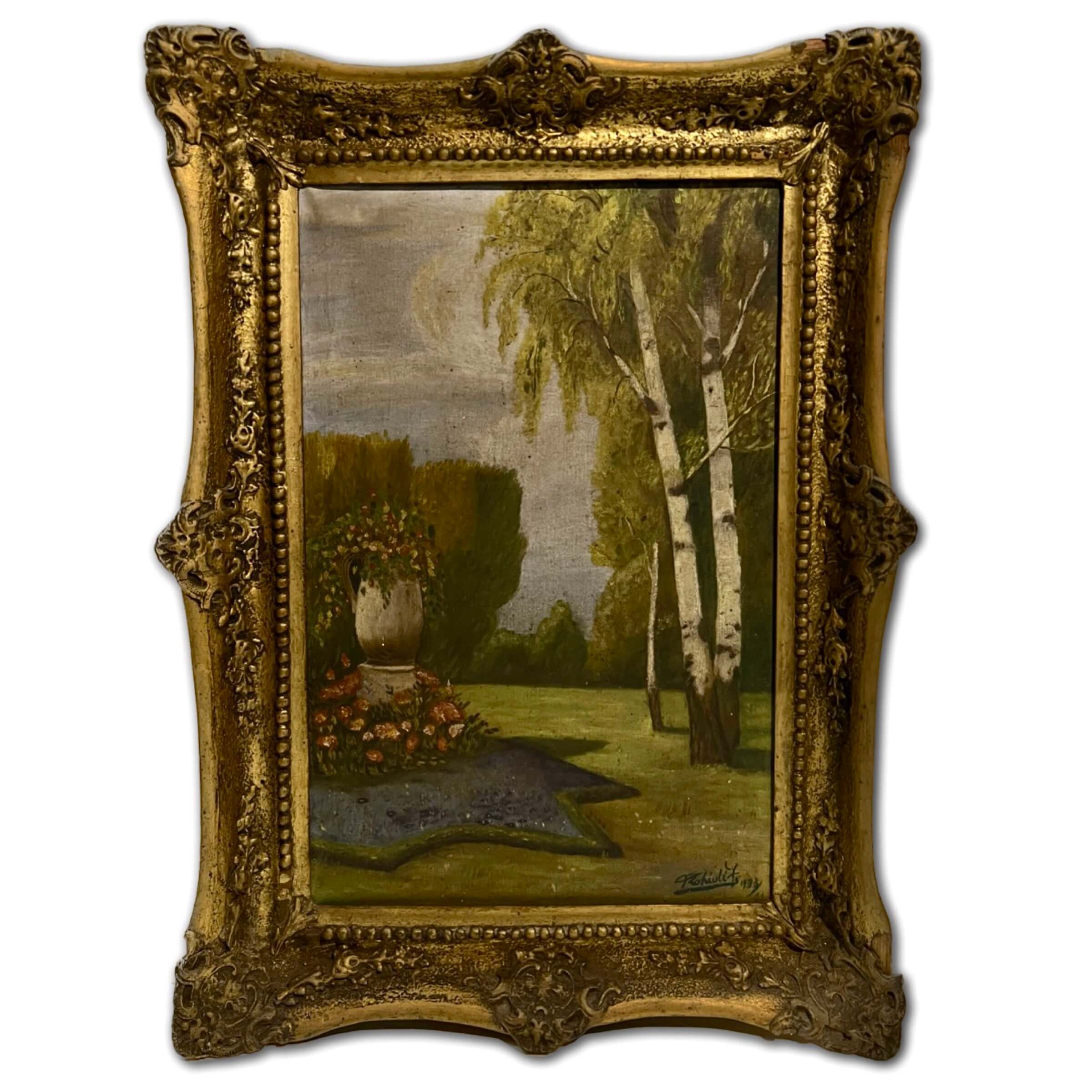 Nyírfák a parkban I., 1933 – Beazonosításra váró magyar művész