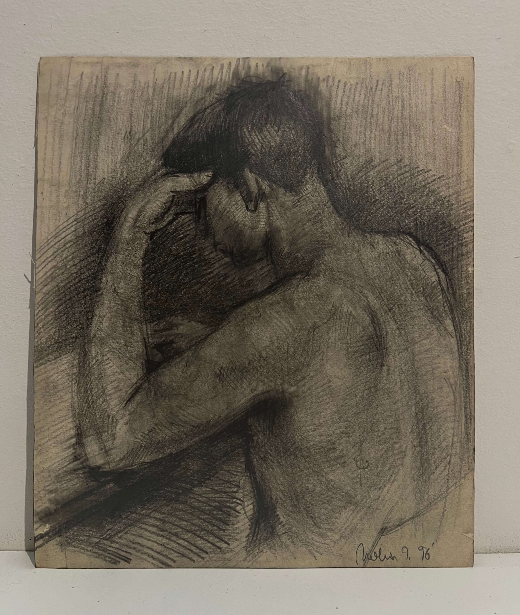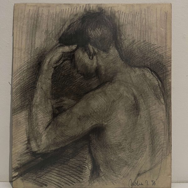 Művészien elkészített modellábrázolás Molnár József kortárs festőművésztől 1996-ból, amely egy hozzáillő, paszpartus keretezést igényel.