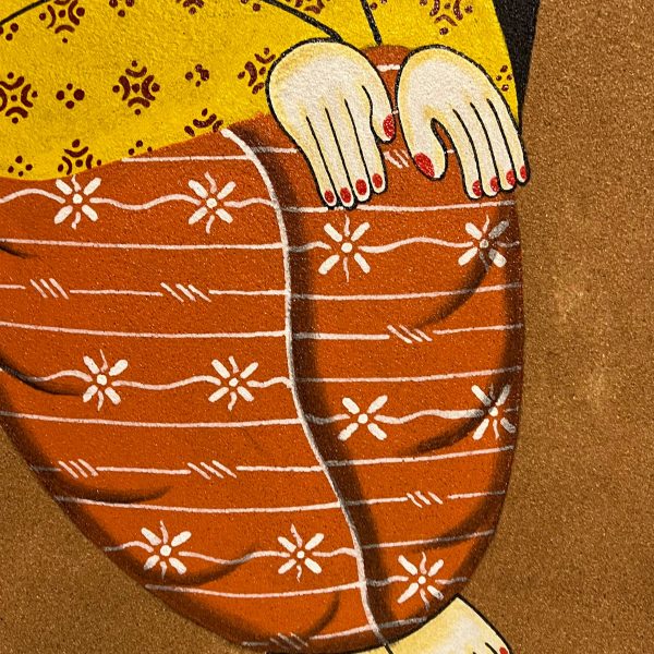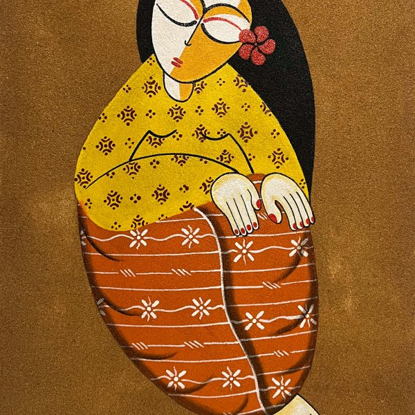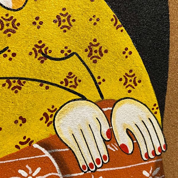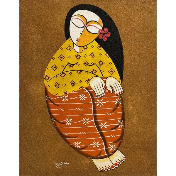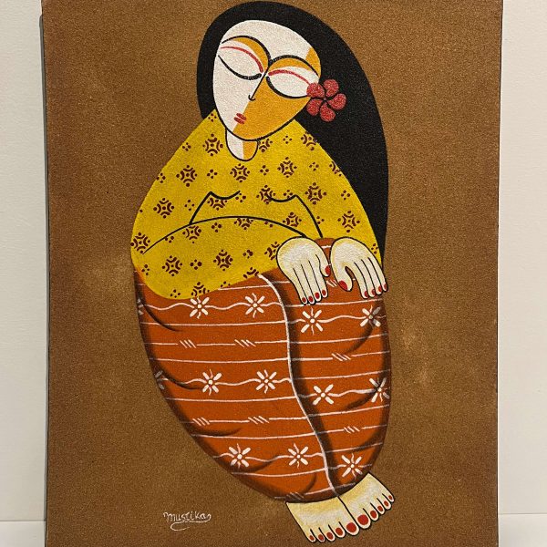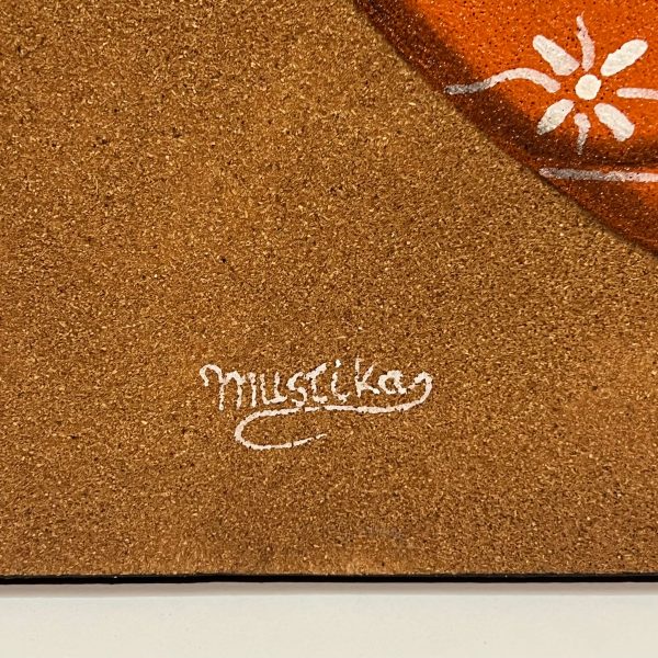 Különleges, aranyos alkotás érdes alapozással, amely nem igényel keretezést sem, így azonnal falra is akasztható. A művész beazonosítása folyamatban van.
