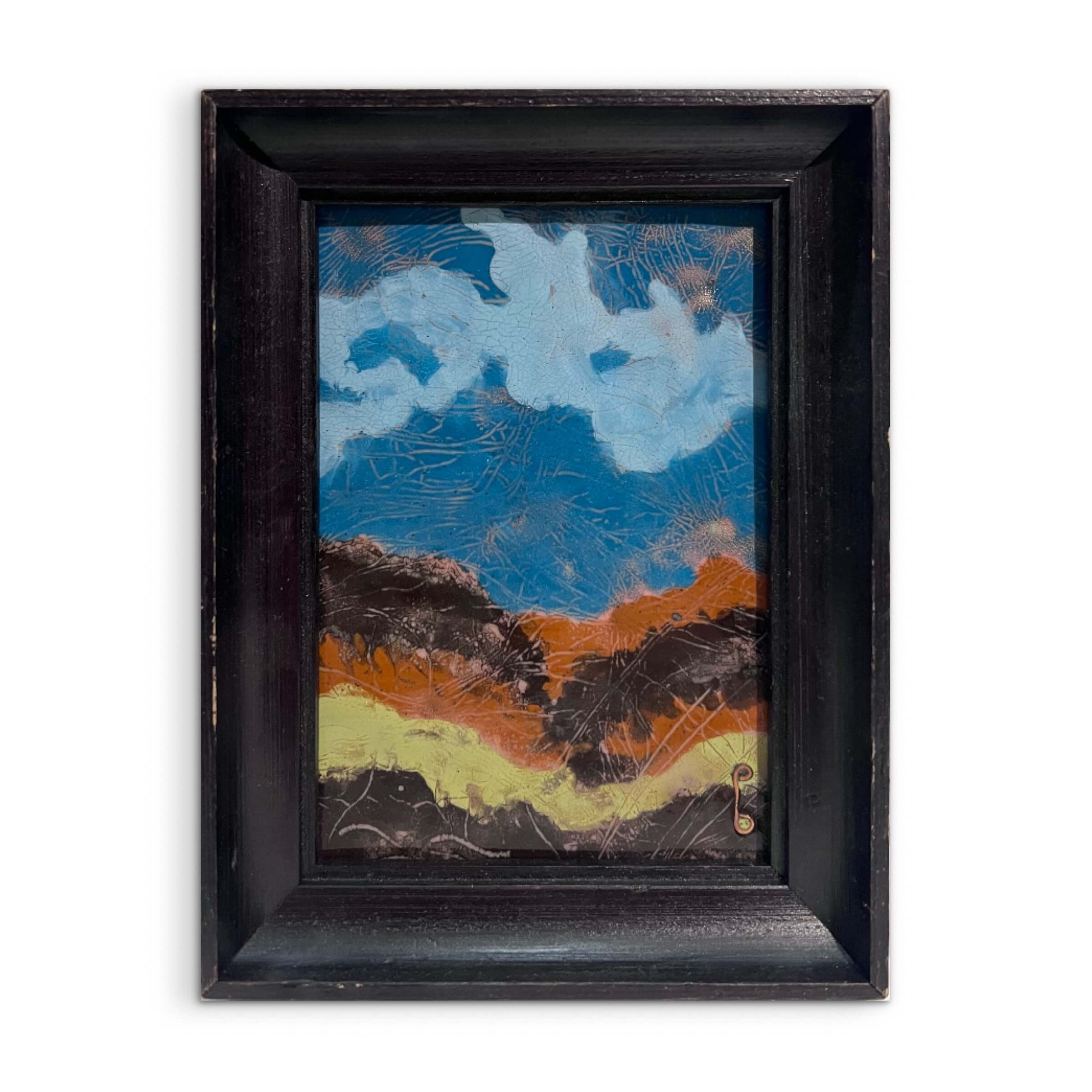 Művészien elkészített tűzzománc munka magyar művésztől hozzáillő keretben, azonnal falra akasztható állapotban. A művész beazonosítása folyamatban van!