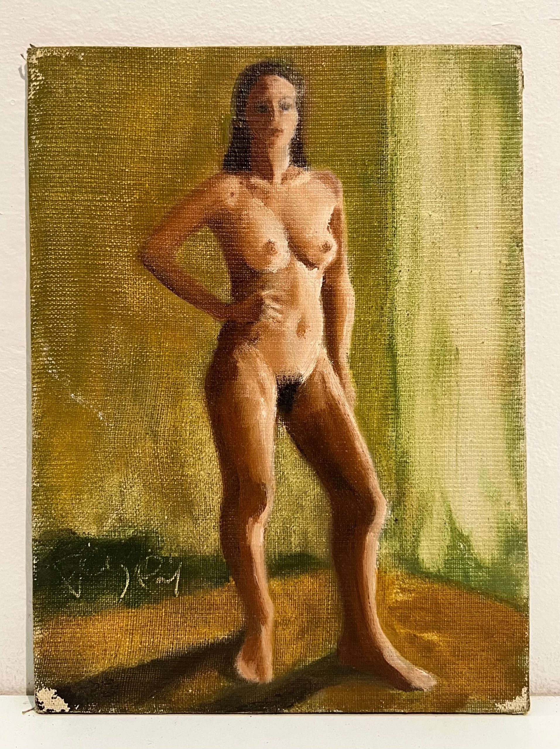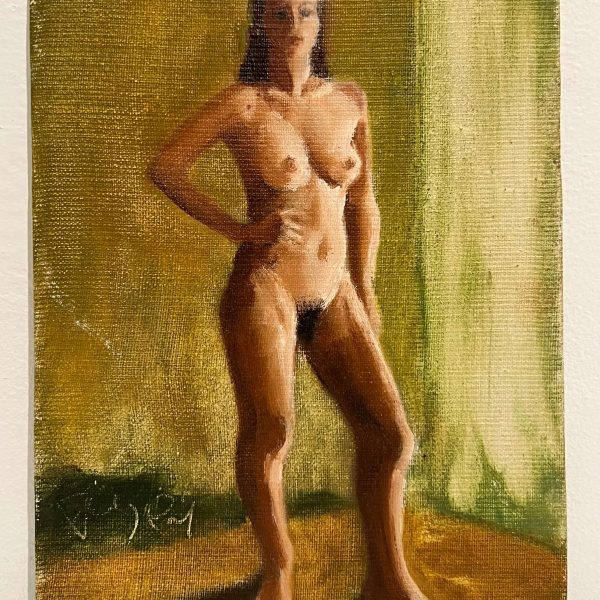 Szalay Pál (1953-2015) Aktmodell zöld függöny előtt