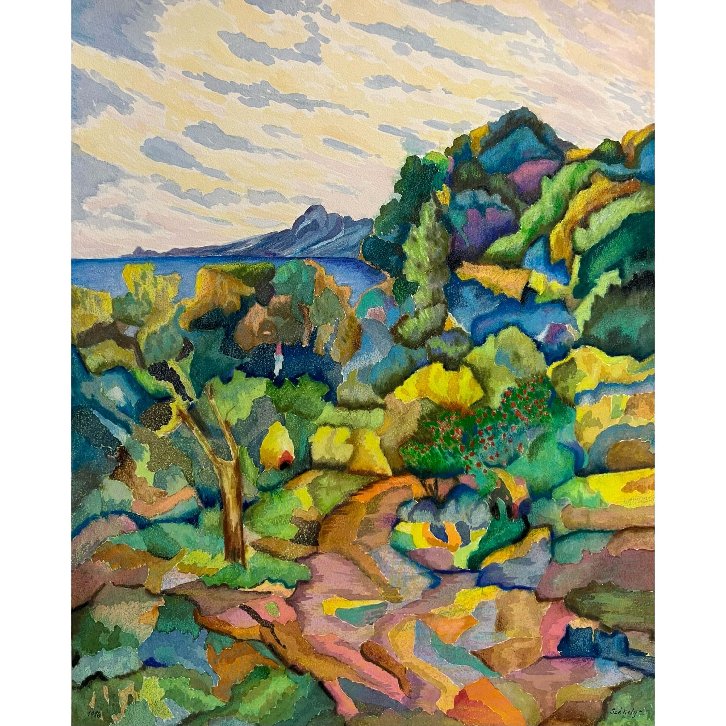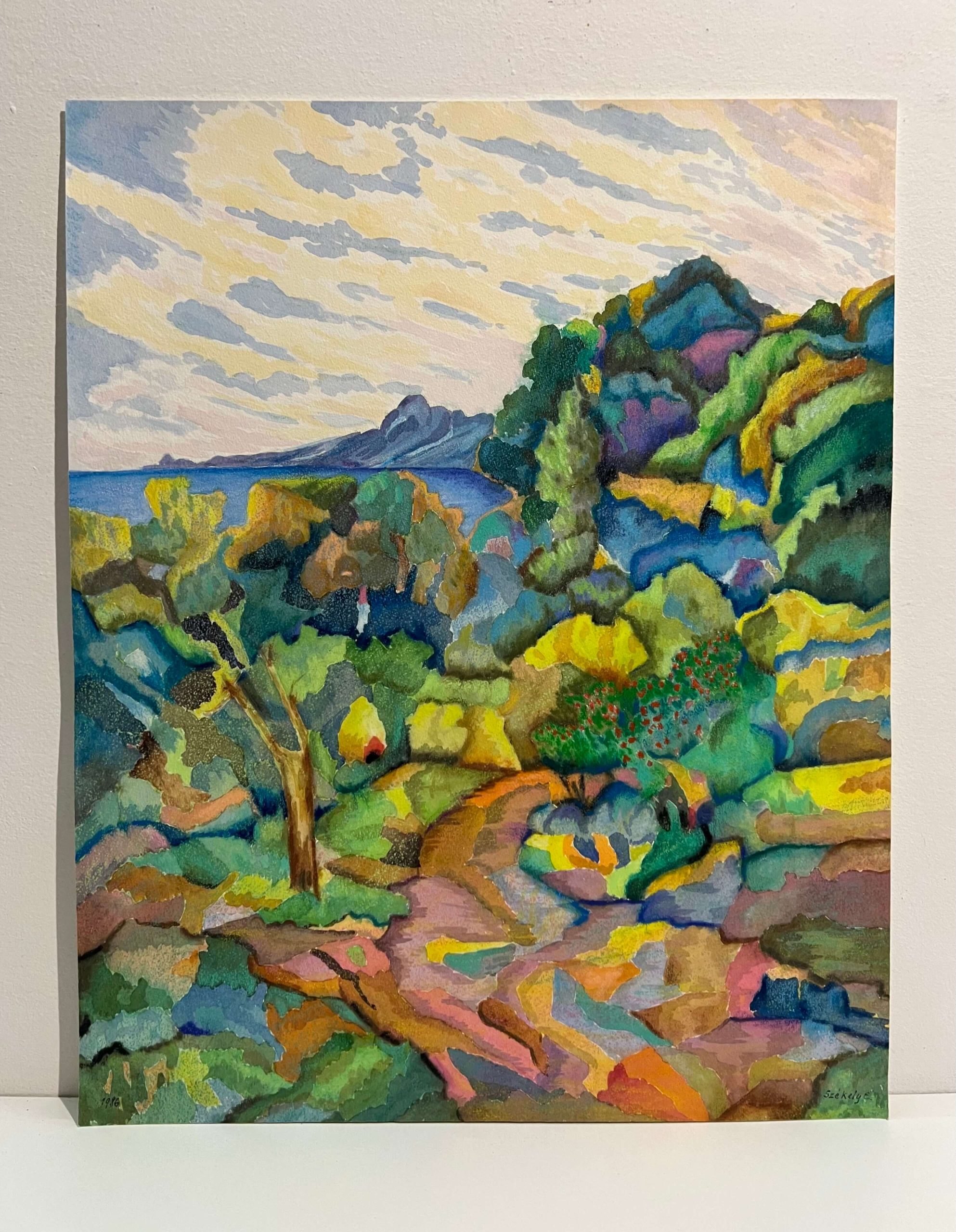 Színpompás tájat ábrázoló alkotás Székely Endre (1917-2014) magyar festőművésztől, amely csak egy hozzáillő keretezést igényel. Gyűjtői darab!