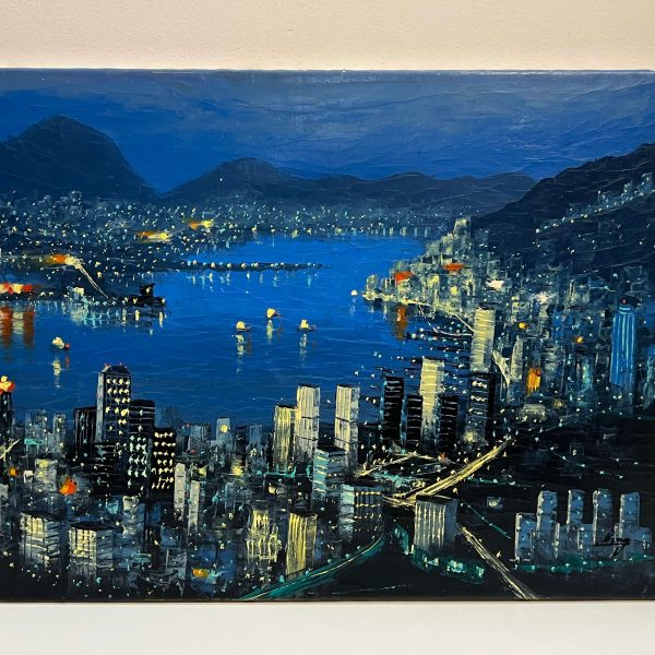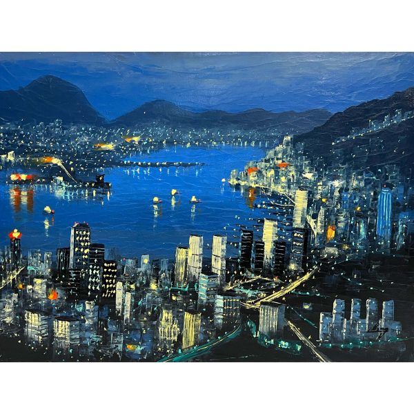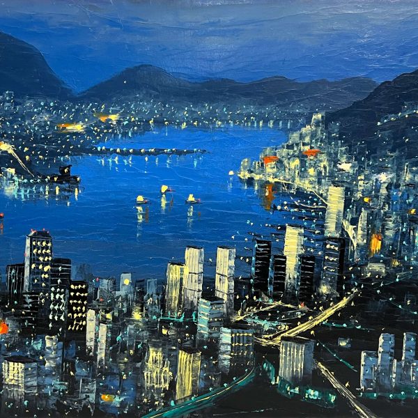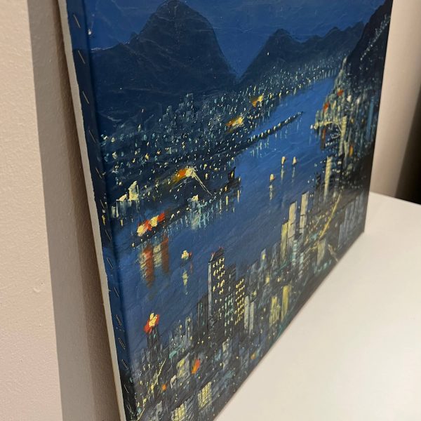 Seaside city in night lights - Artist awaiting identification