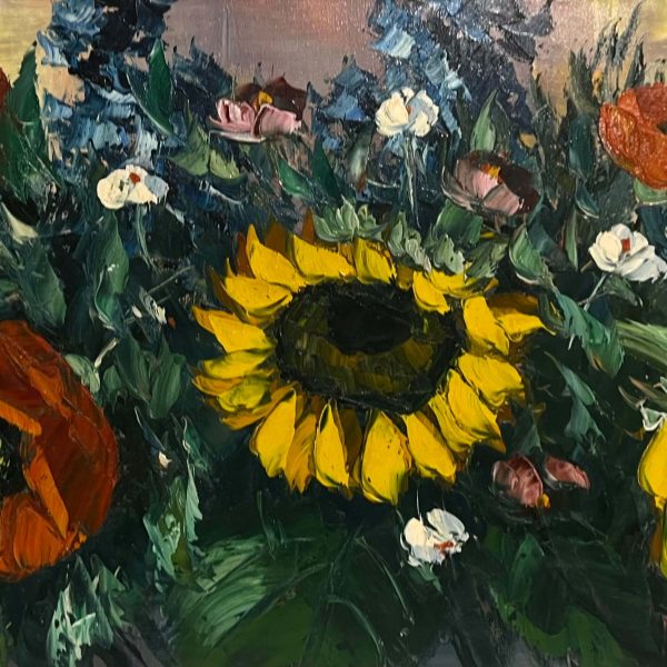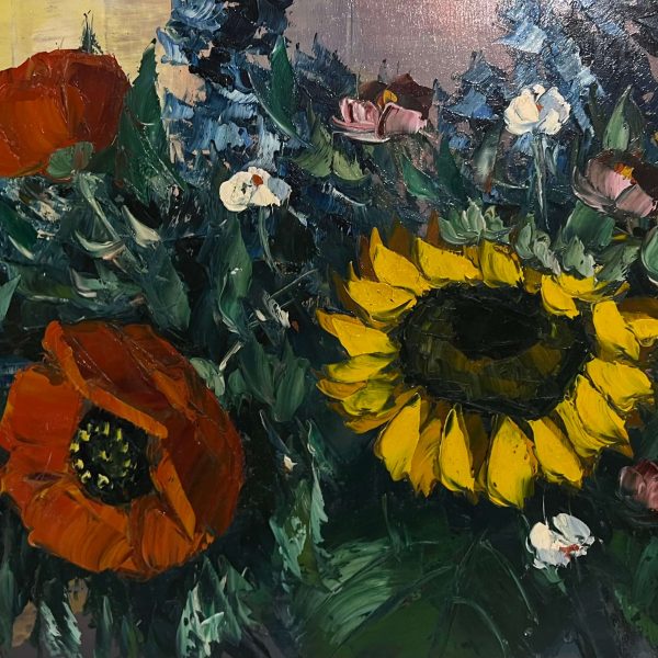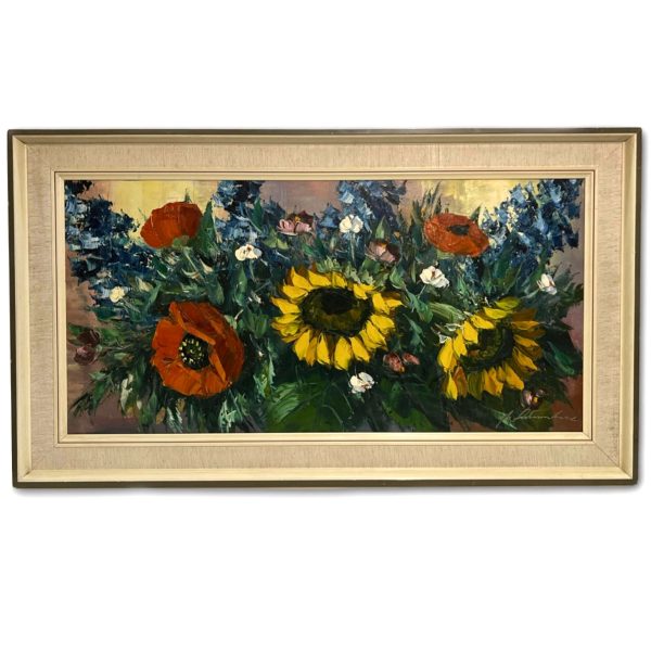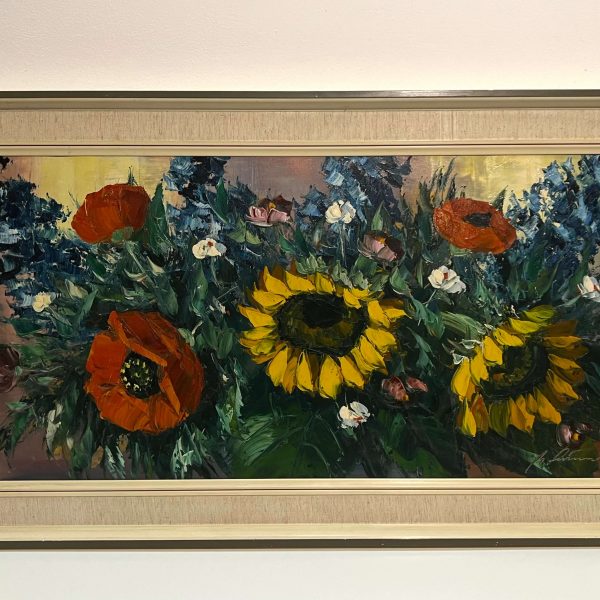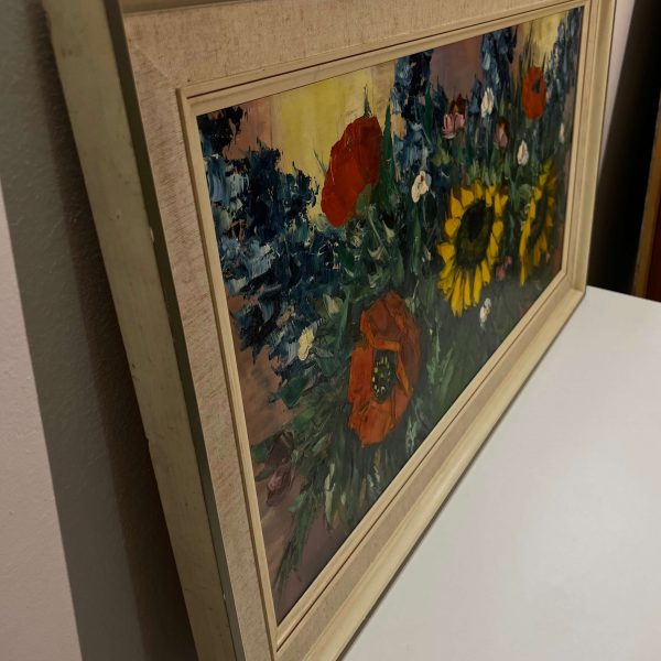 Gyönyörűen megfestett virágcsendélet hozzáillő, tipikus 70-es éveket idéző keretezéssel, azonnal falra akasztható állapotban! A művész beazonosítása folyamatban van!