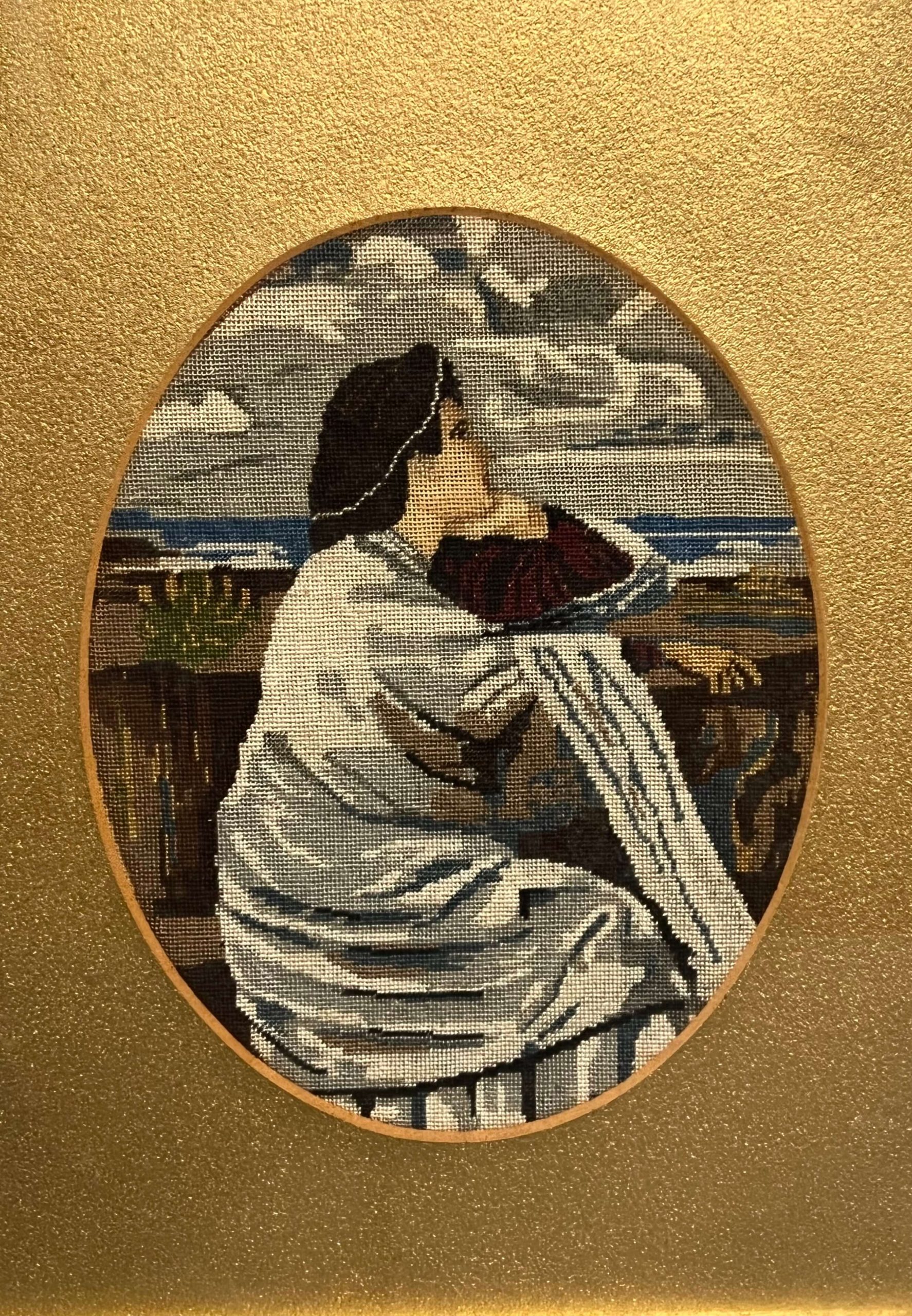 Hímzés. Szép, régi tű gobelin munka antik keretezéssel, azonnal falra akasztható állapotban!