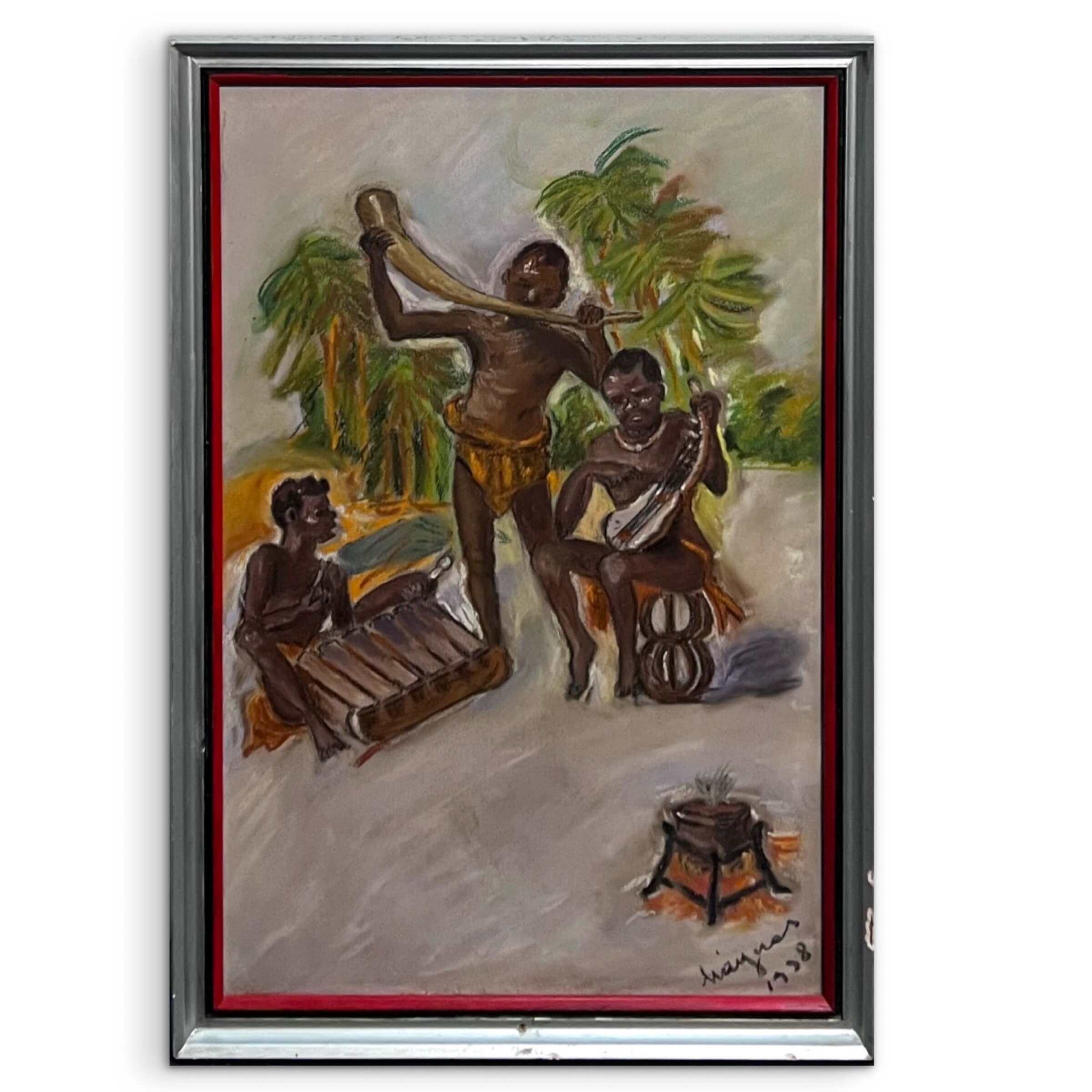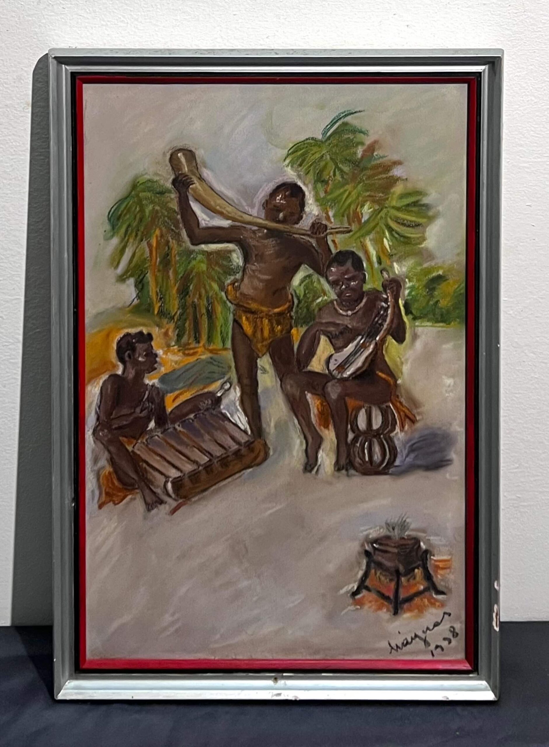 Régi pasztell alkotás, hangulatos afrikai életkép ábrázolás 1938-ból eredeti, üvegezett keretezésében. A művész beazonosítása folyamatban van!