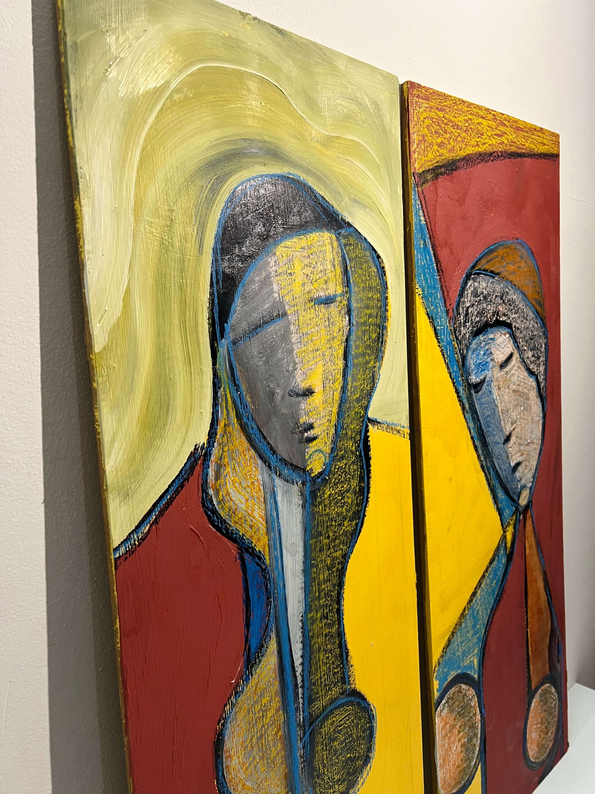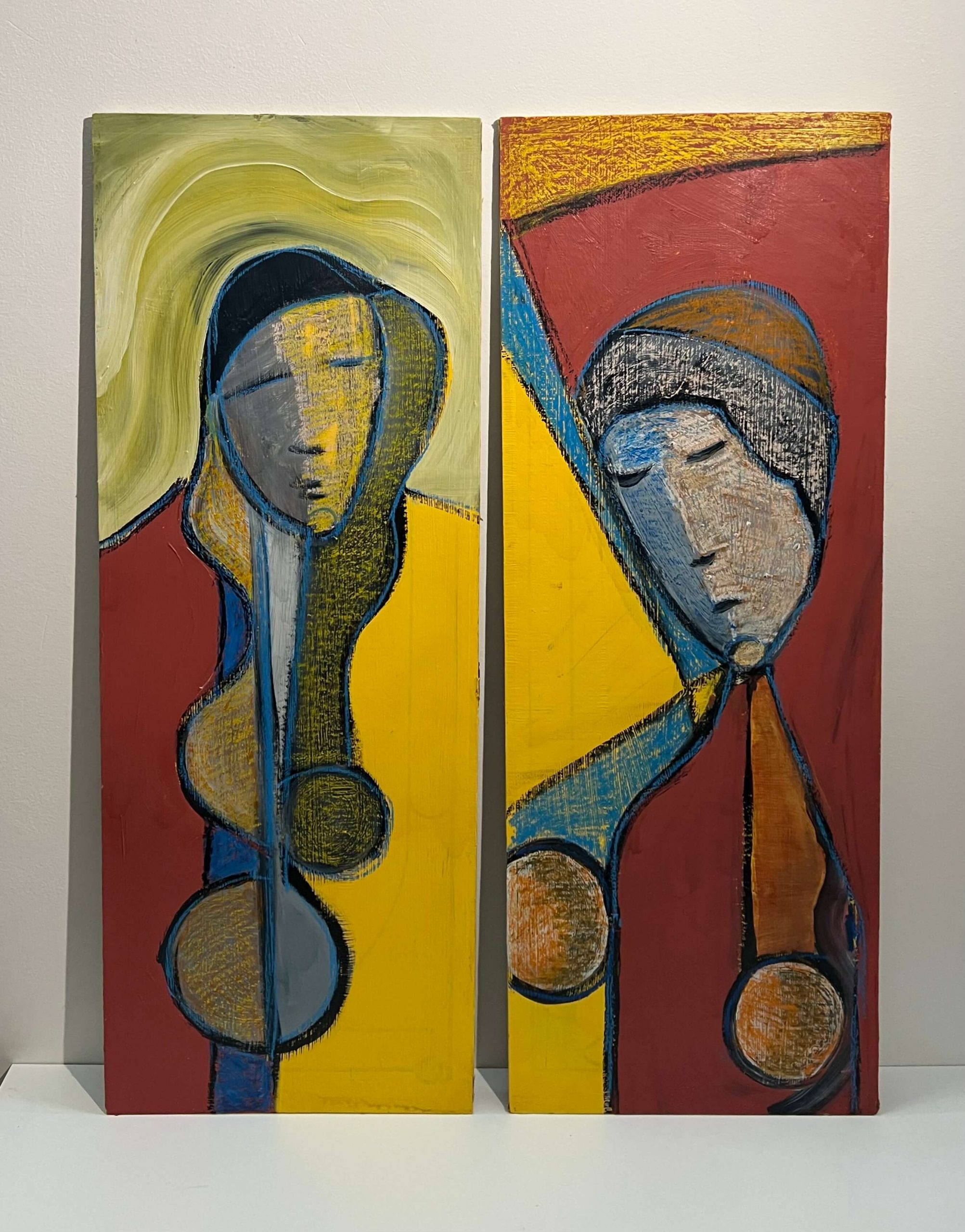 Nagy méretű, 1 cm-es vastag préselt fára elkészített hangulatos színvilágú, modern páros alkotás, melyek külön is megvásárolhatóak 145.000 Ft darabáron. Extra lakásdísz!