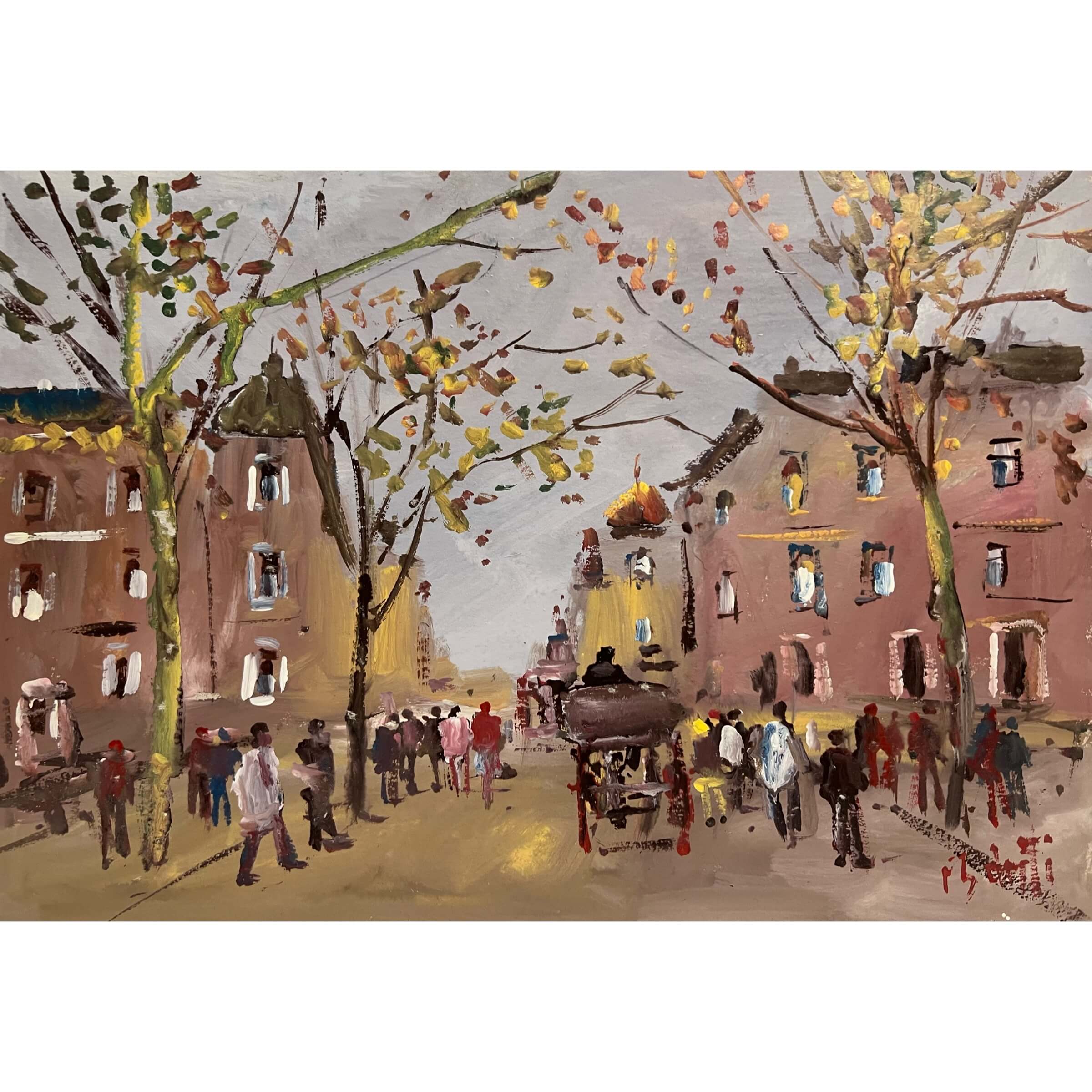 Igényesen megfestett nagyvárosi utcakép emberekkel Bánfi József (1936- ) híres magyar festőtől, amely csak egy hozzáillő keretezésre és egy gyűjtőre vár! Személyesen a művésztől lett megvásárolva az alkotás. Igazi gyűjtői, befektetői darab!