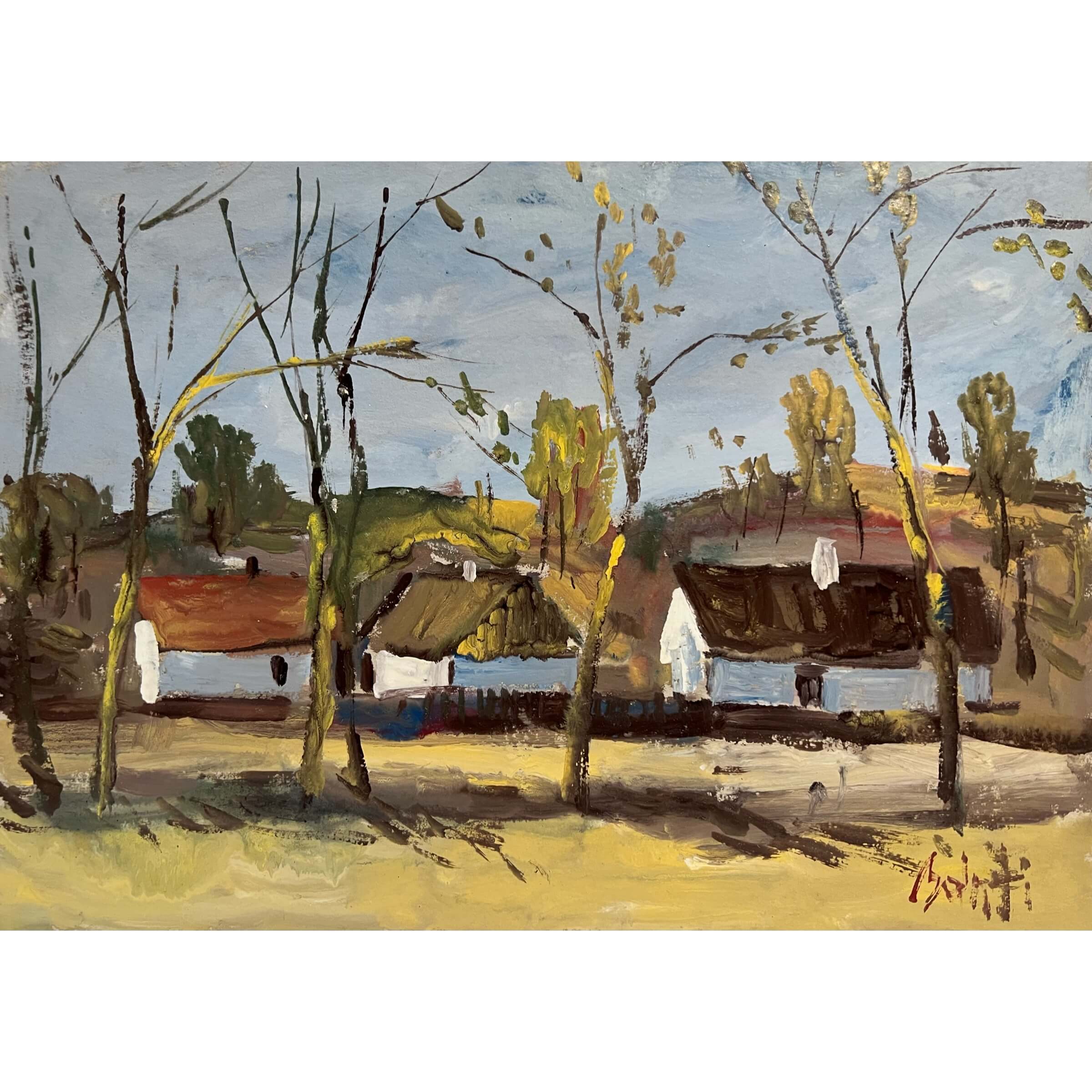 Igényesen megfestett tanyaábrázolás Bánfi József (1936- ) híres magyar festőtől, amely csak egy hozzáillő, szép keretezésre és egy gyűjtőre vár. Személyesen a művésztől lett megvásárolva az alkotás. Igazi gyűjtői, befektetői darab!