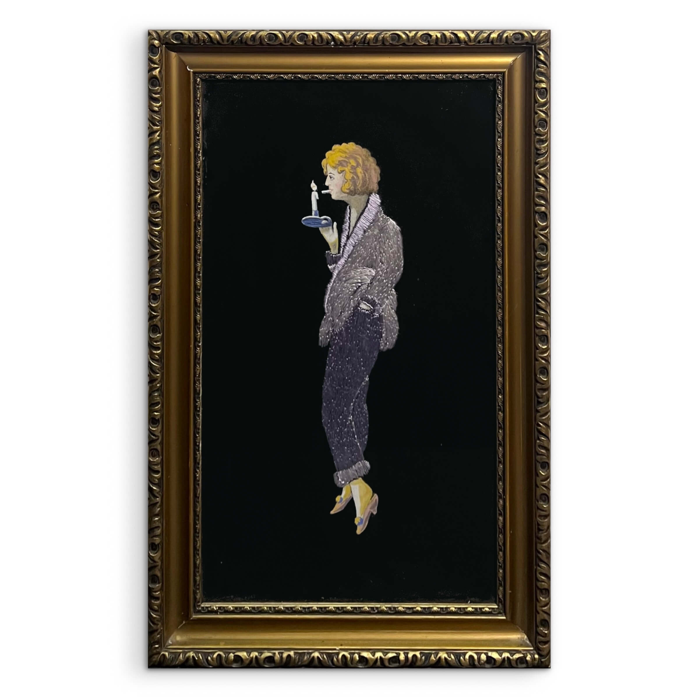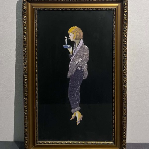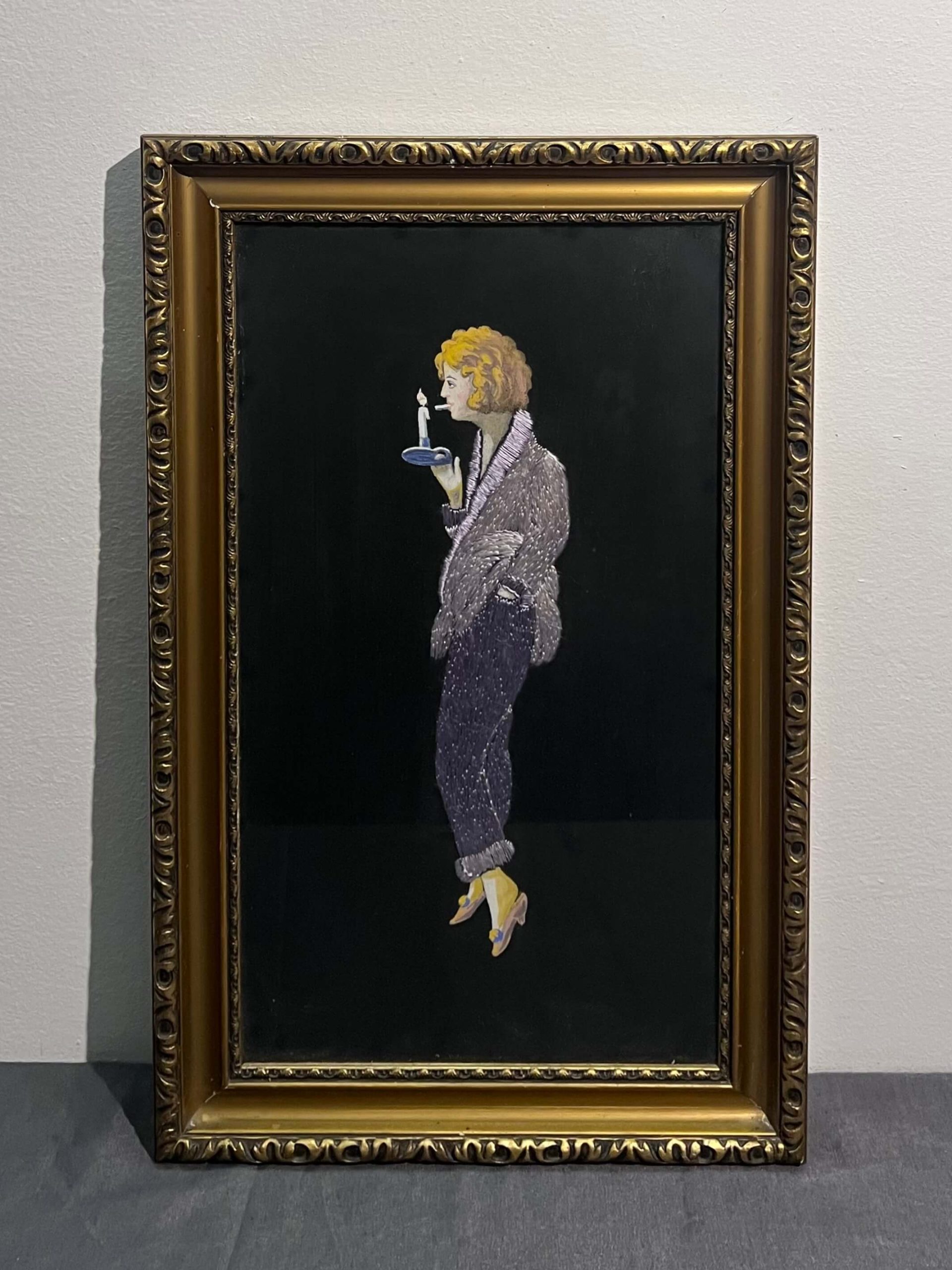 Régi, nagyon művészi, art déco stílusú hímzés fekete selyemre készítve üvegezett antik keretben. Igazi különlegesség, egyedi kézimunka!