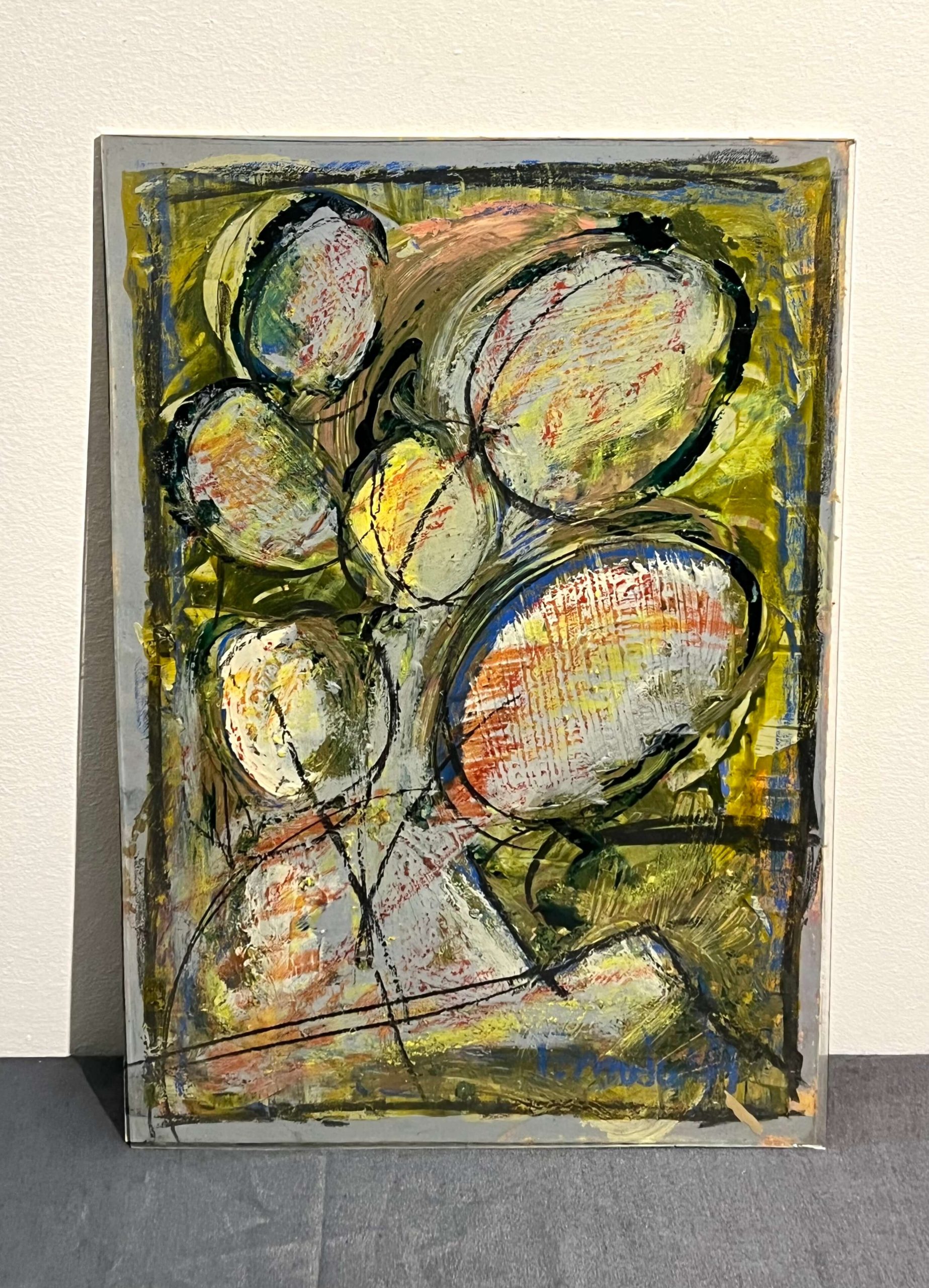 Kellemes színvilágú, fantáziadús, absztrakt jellegű modern kortárs alkotás üveg előlappal, csak egy szép keretezésre várva. A művész beazonosítása még folyamatban van! Extra gyűjtői darab a modern alkotások szerelmeseinek!