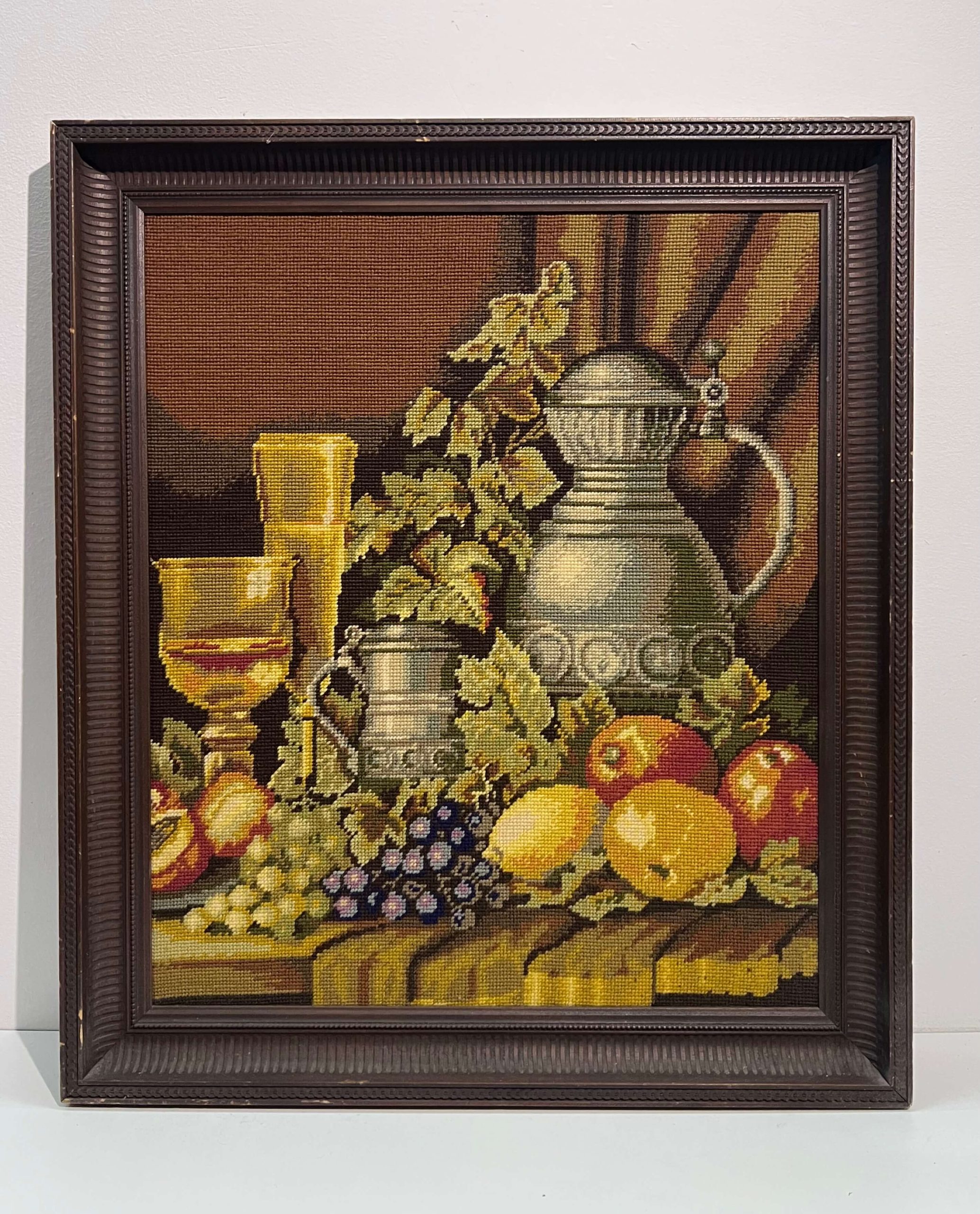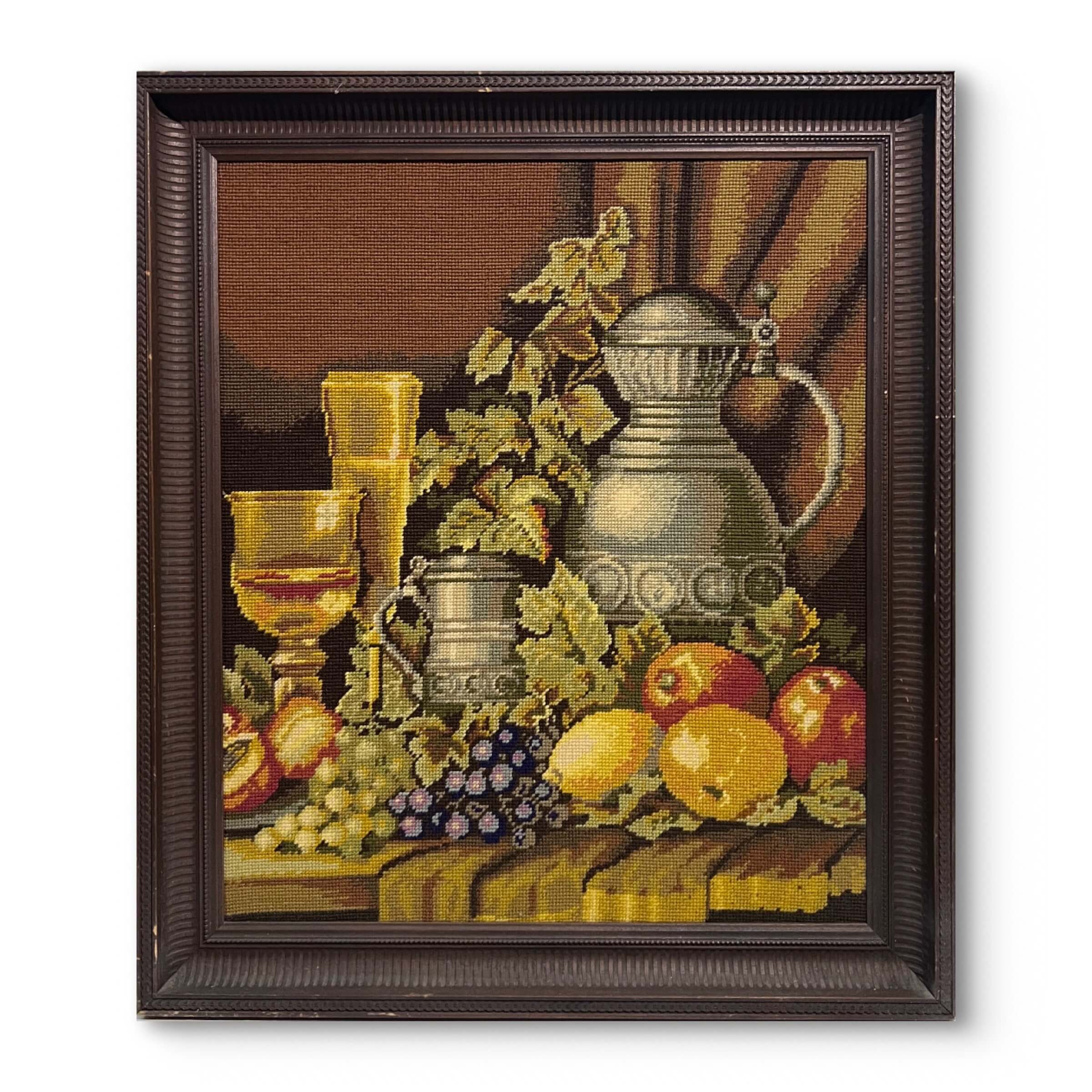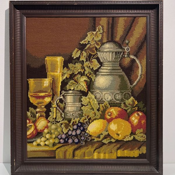 Hímzés. Igényesen elkészített gobelin munka Nyugat-Európából 1979-ből hozzáillő, jó keretben.