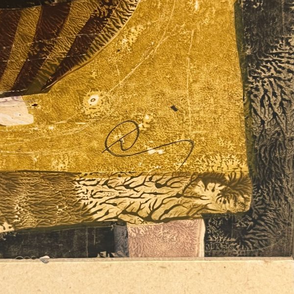Gyönyörű színekkel elkészített linóleummetszet paszpartuval ellátva a becsült 1950-60-as évekből. A művész beazonosítása folyamatban van!