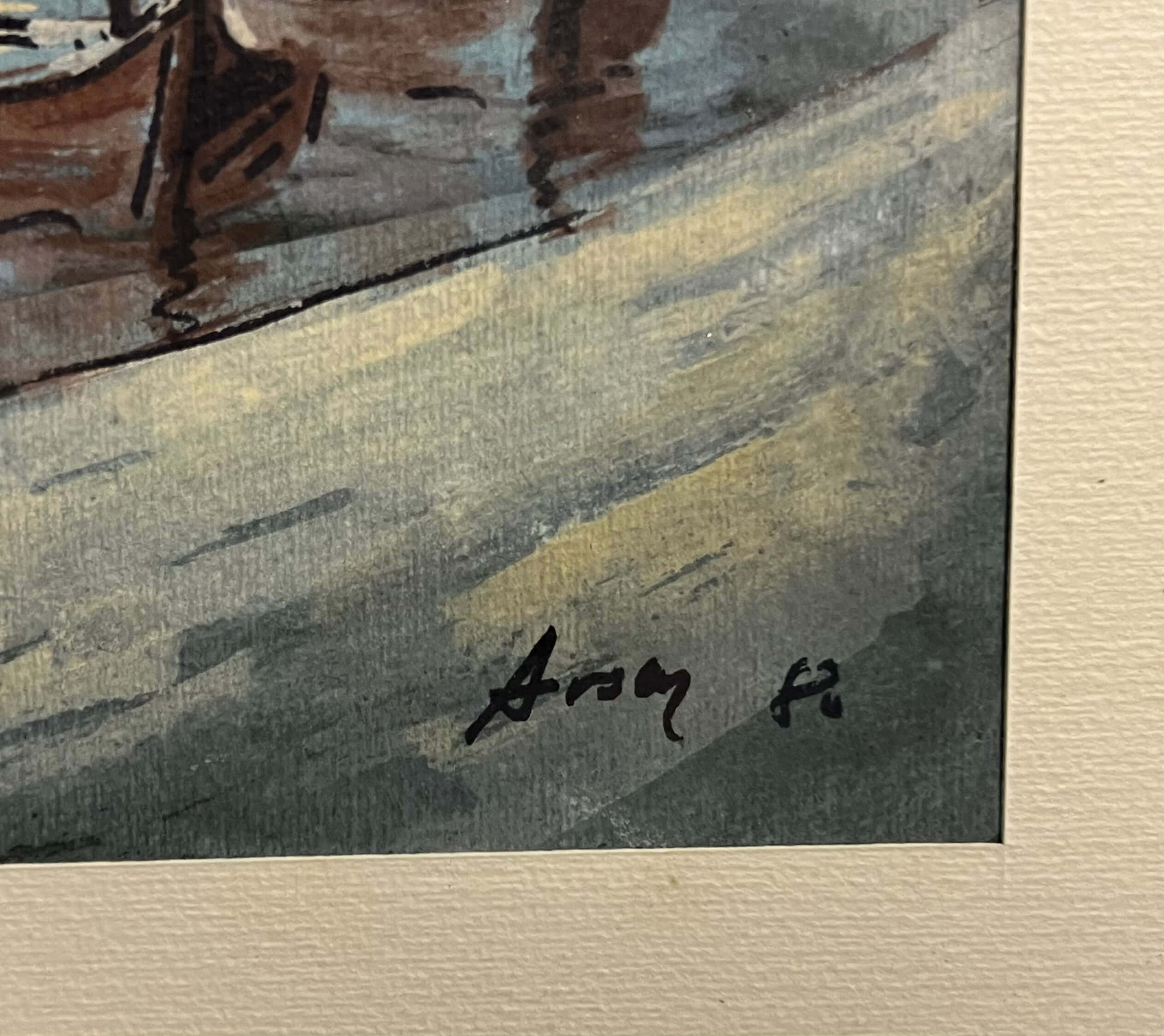 Igényesen megfestett alkotás gyönyörűen keretezve, üvegezve és paszpartuzva, azonnal falra akasztható állapotban! A művész beazonosítása folyamatban van!