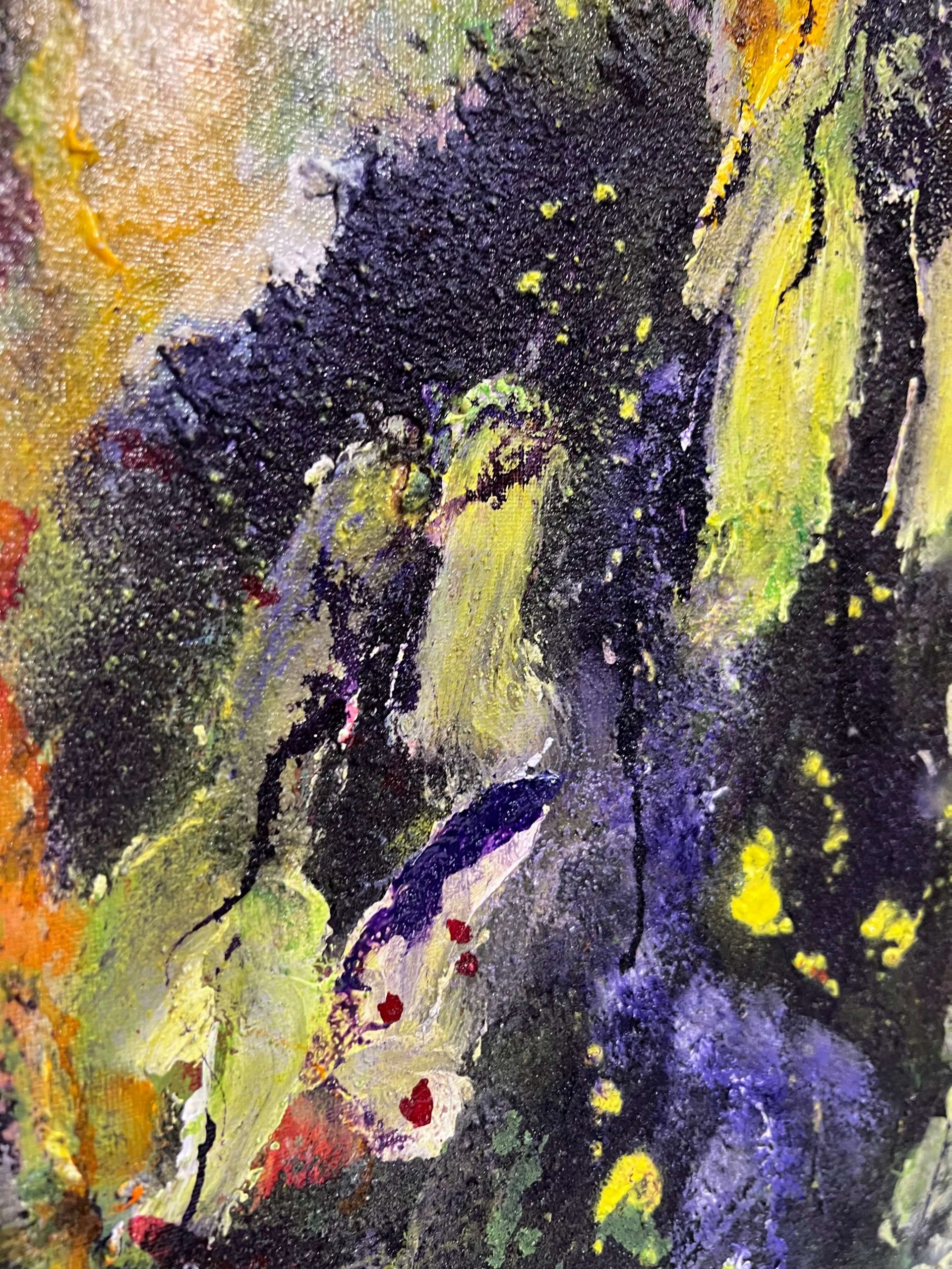 Kiváló színekkel és nagyon különleges technikával megfestett modern absztrakt olaj-vászon kép 2006-ból, külföldi kortárs művésztől. A művész kiléte még beazonosítás alatt van! Nem igényel keretezést a kép, azonnal falra is akasztható!