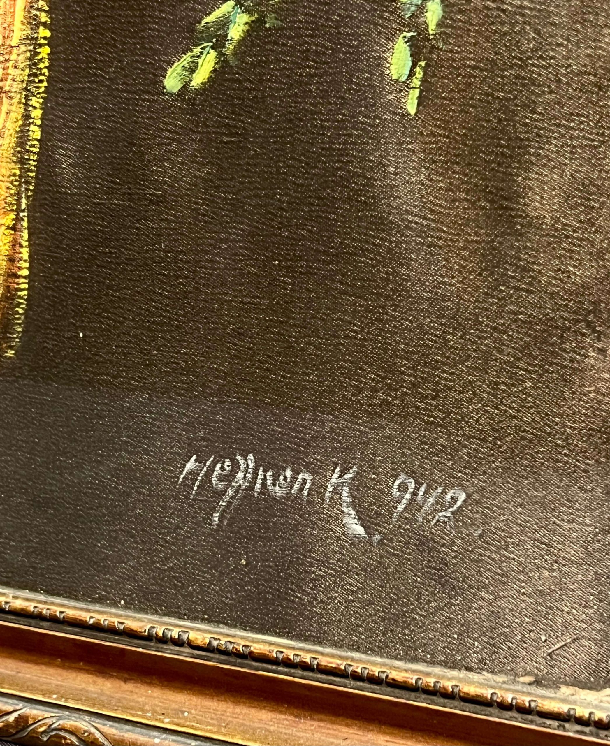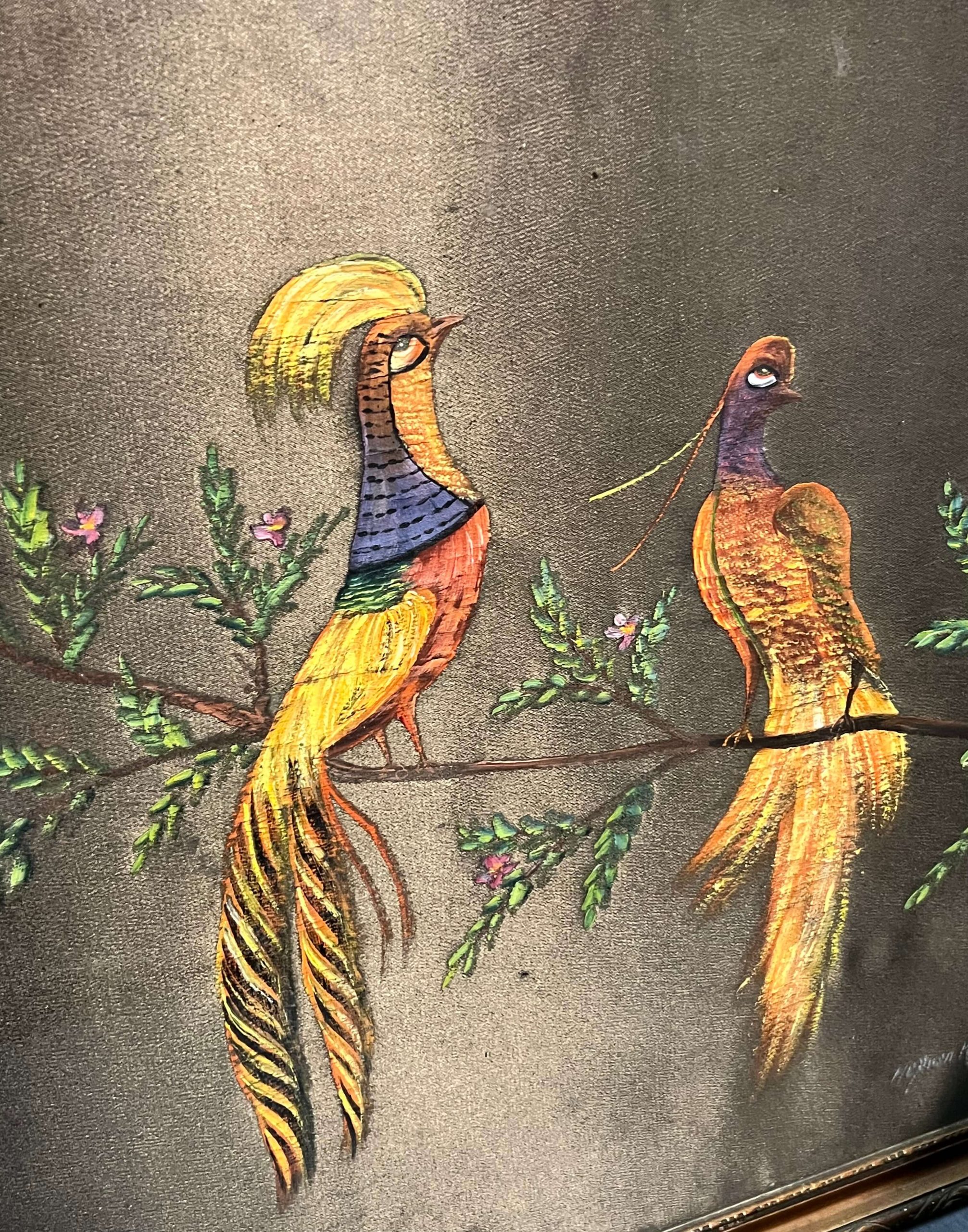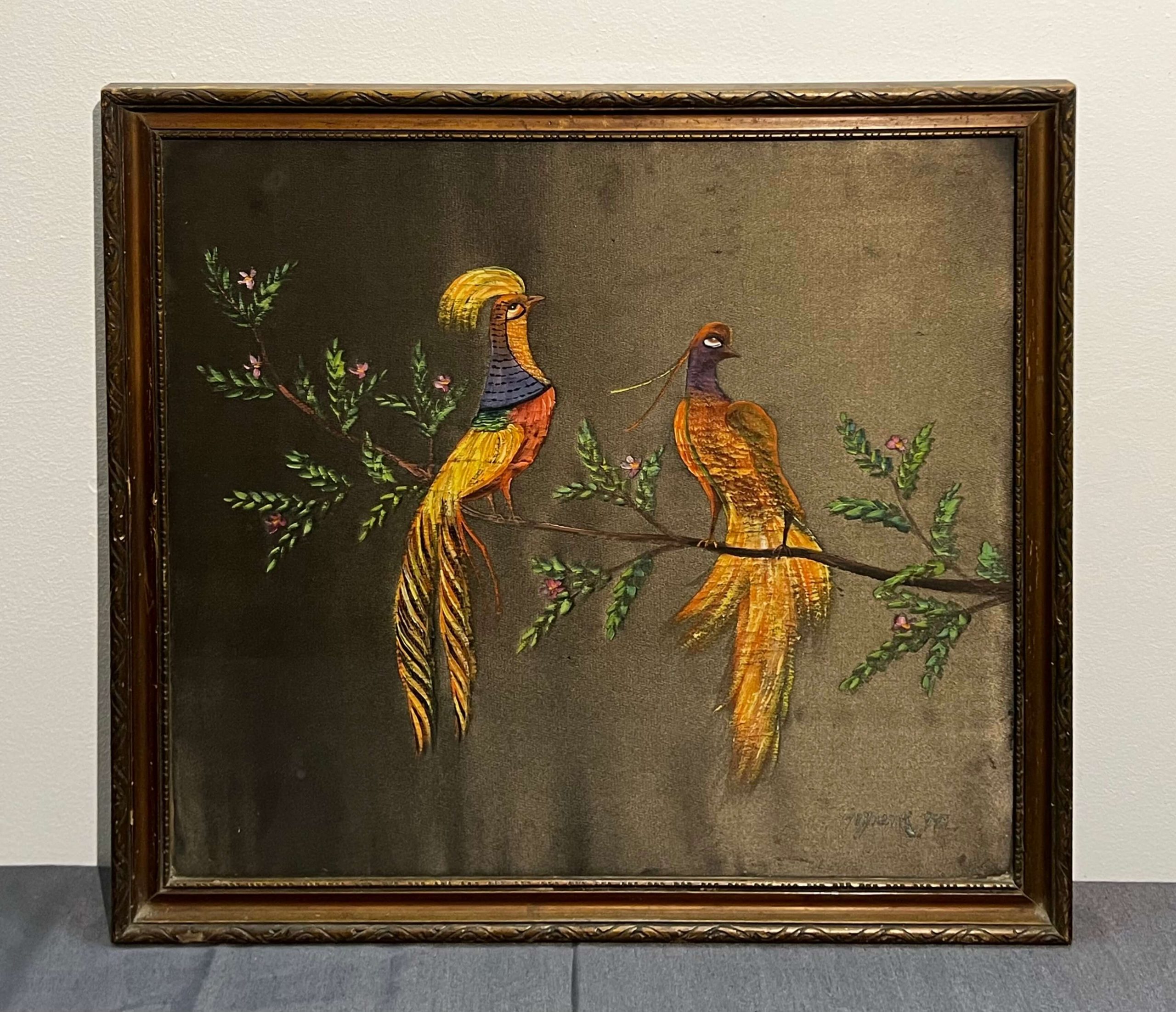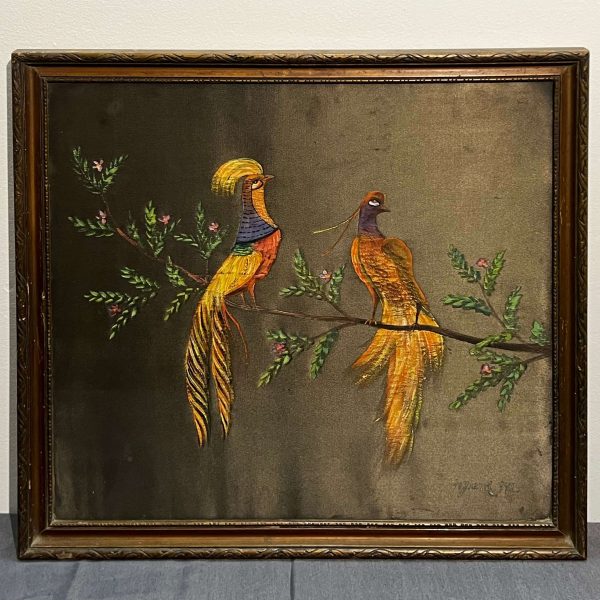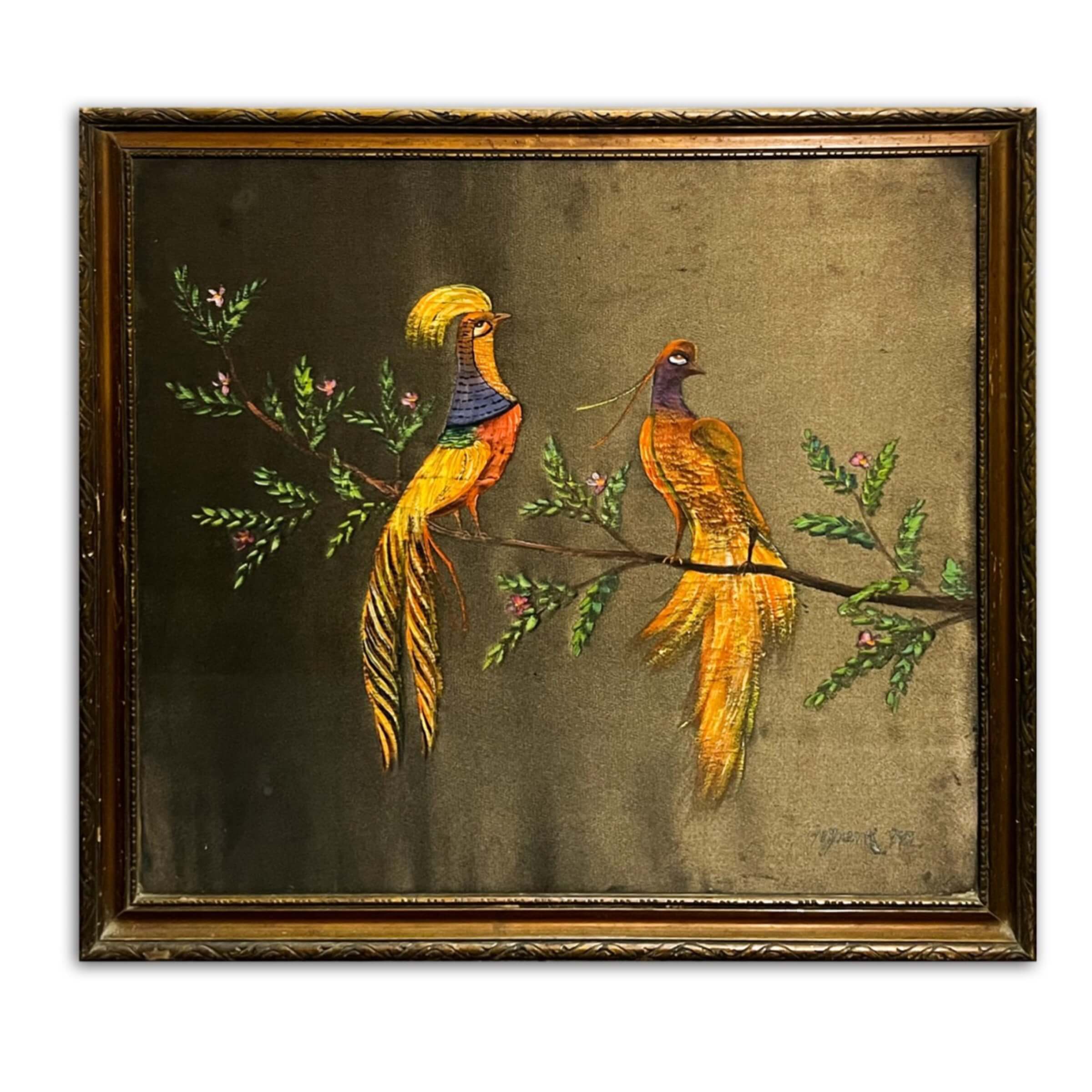Régi, igényes hímzett selyemkép gyönyörű, üvegezett, antik keretben, azonnal falra akasztható állapotban.
