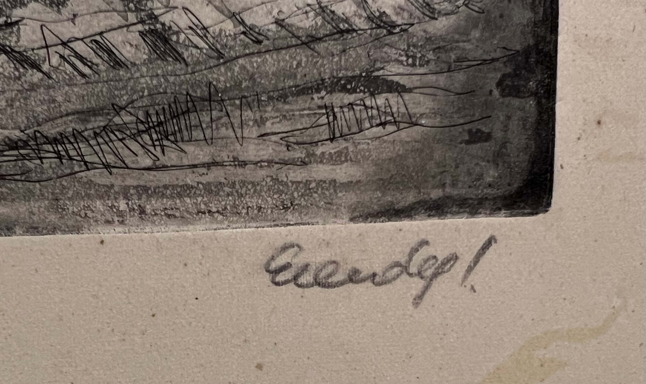 Régi rézkarc munka Élesdy István (1912-1987) híres magyar festő, grafikustól, amely csak egy hozzáillő, szép, paszpartus keretezést igényel. Gyűjtői darab!