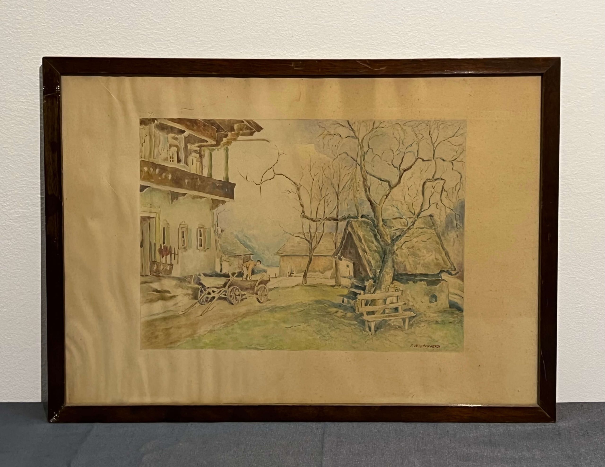 Régi, nagyon igényesen megfestett életkép nyugat-európai művésztől hozzáillő, üvegezett keretben, azonnal falra akasztható állapotban, gyűjtőre várva. A művész beazonosítása folyamatban van. Extra gyűjtői darab!