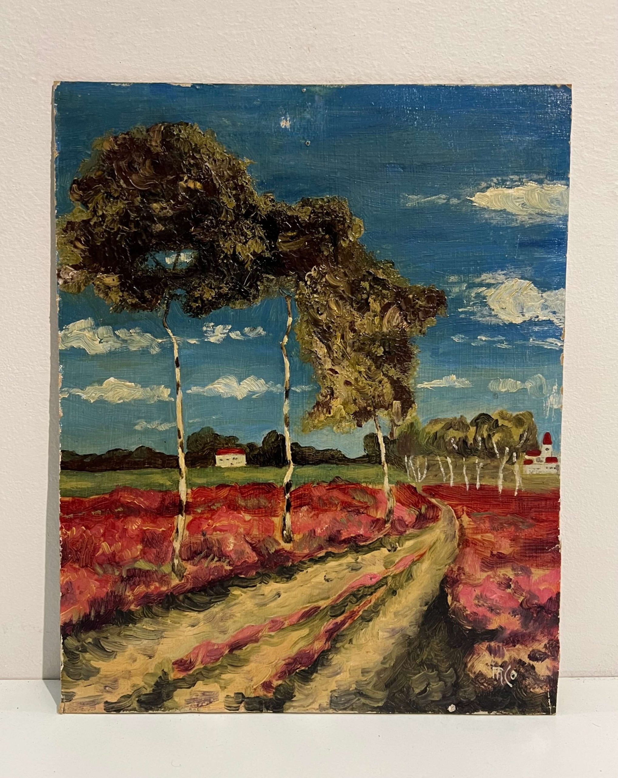Modern, művészi vidéki látkép ábrázolás, különleges hangulatú és színvilágú alkotás, amely egy hozzáillő, jó keretezést követően falra akasztható! A művész beazonosítása folyamatban van. ———————————————————————————————————————