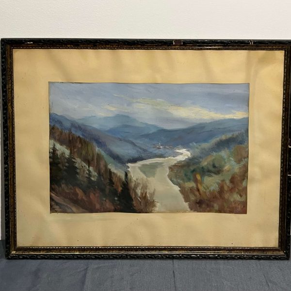Szépen megfestett régi tájkép ábrázolás üvegezett, paszpartuzott keretben, gyűjtőre várva. A művész beazonosítása folyamatban van. Extra gyűjtői darab!