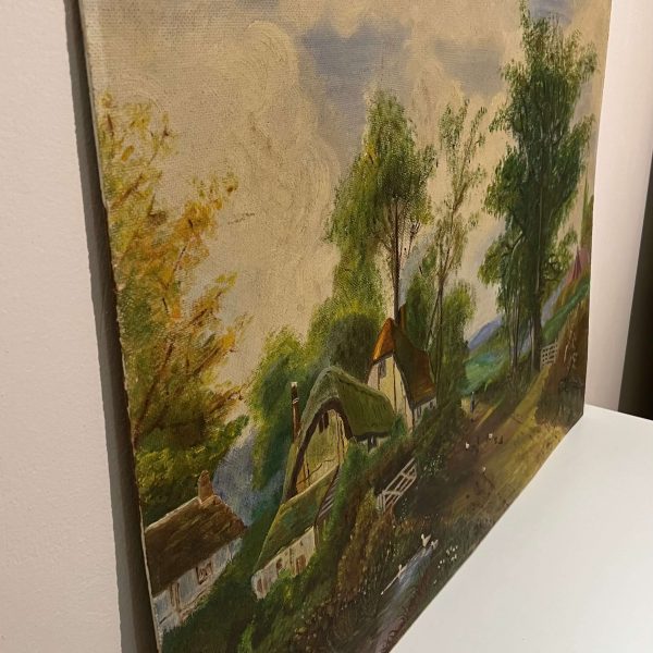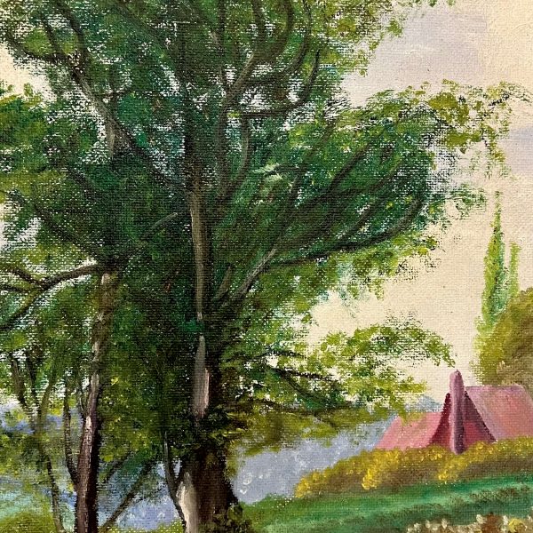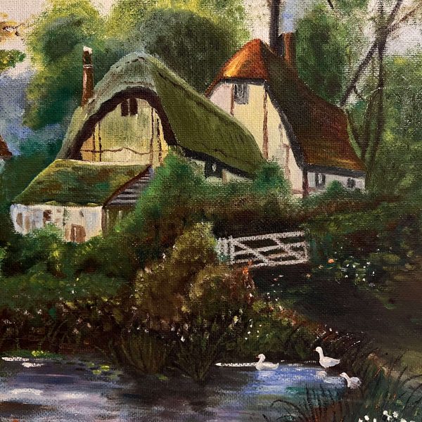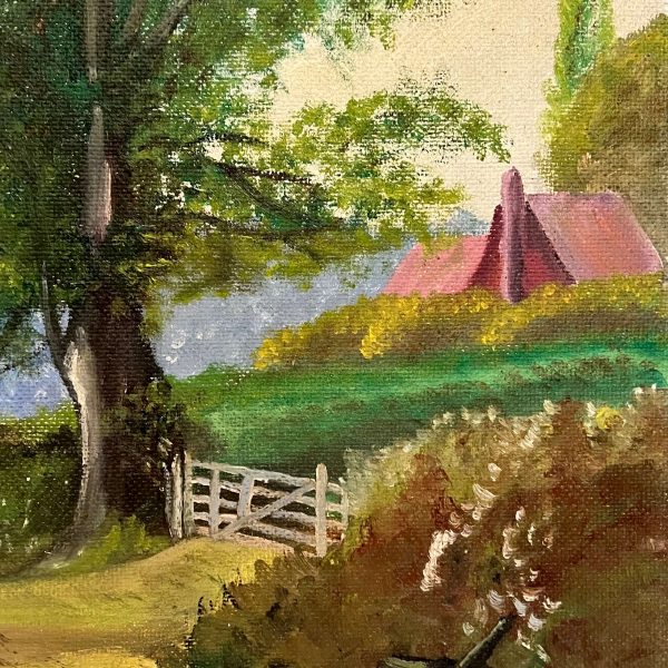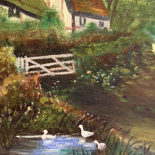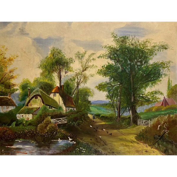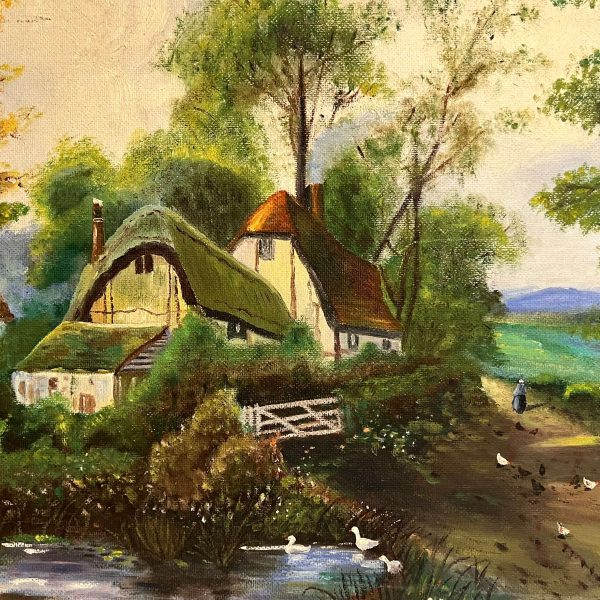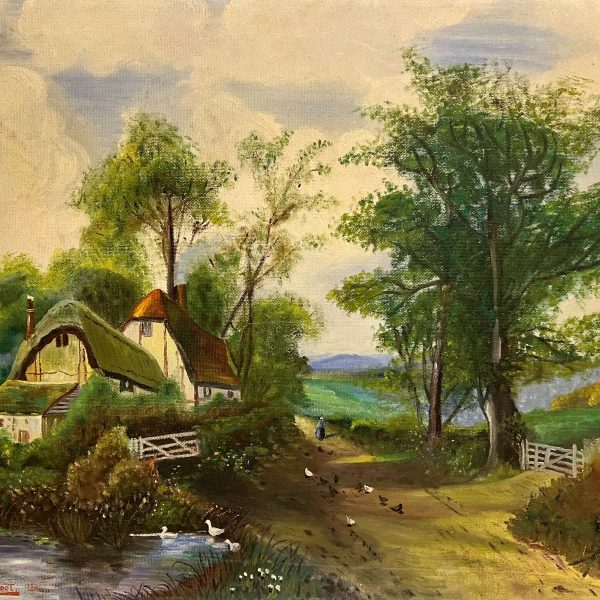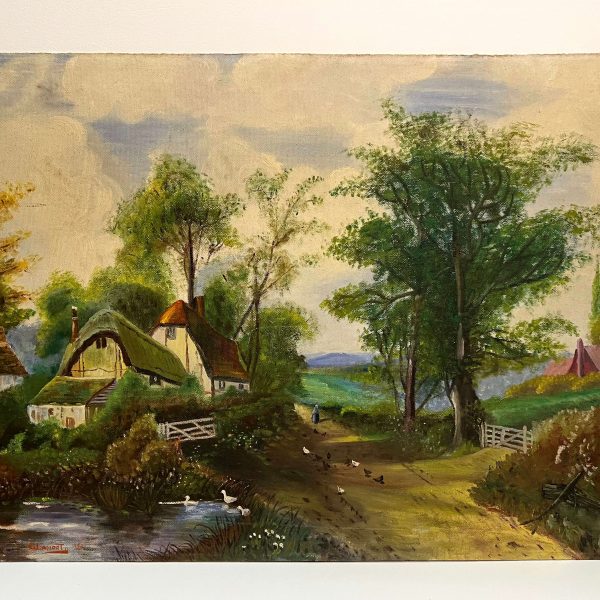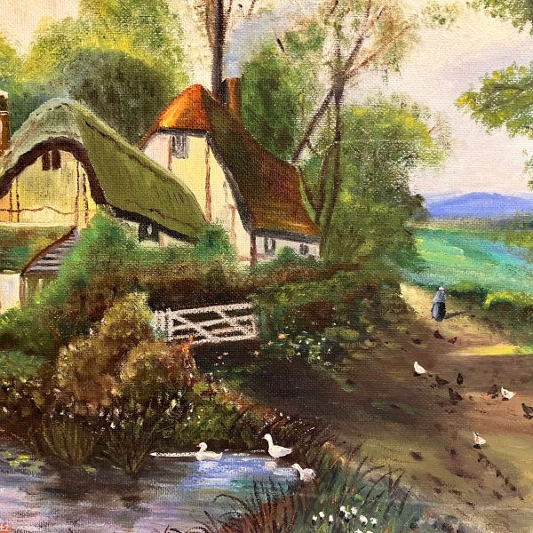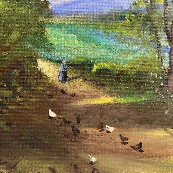 Hangulatos, szinte már nosztalgikus falusi életkép ábrázolás nyugat-európai művésztől, amely csak egy hozzáillő keretezést igényel! A művész beazonosítása még folyamatban van!