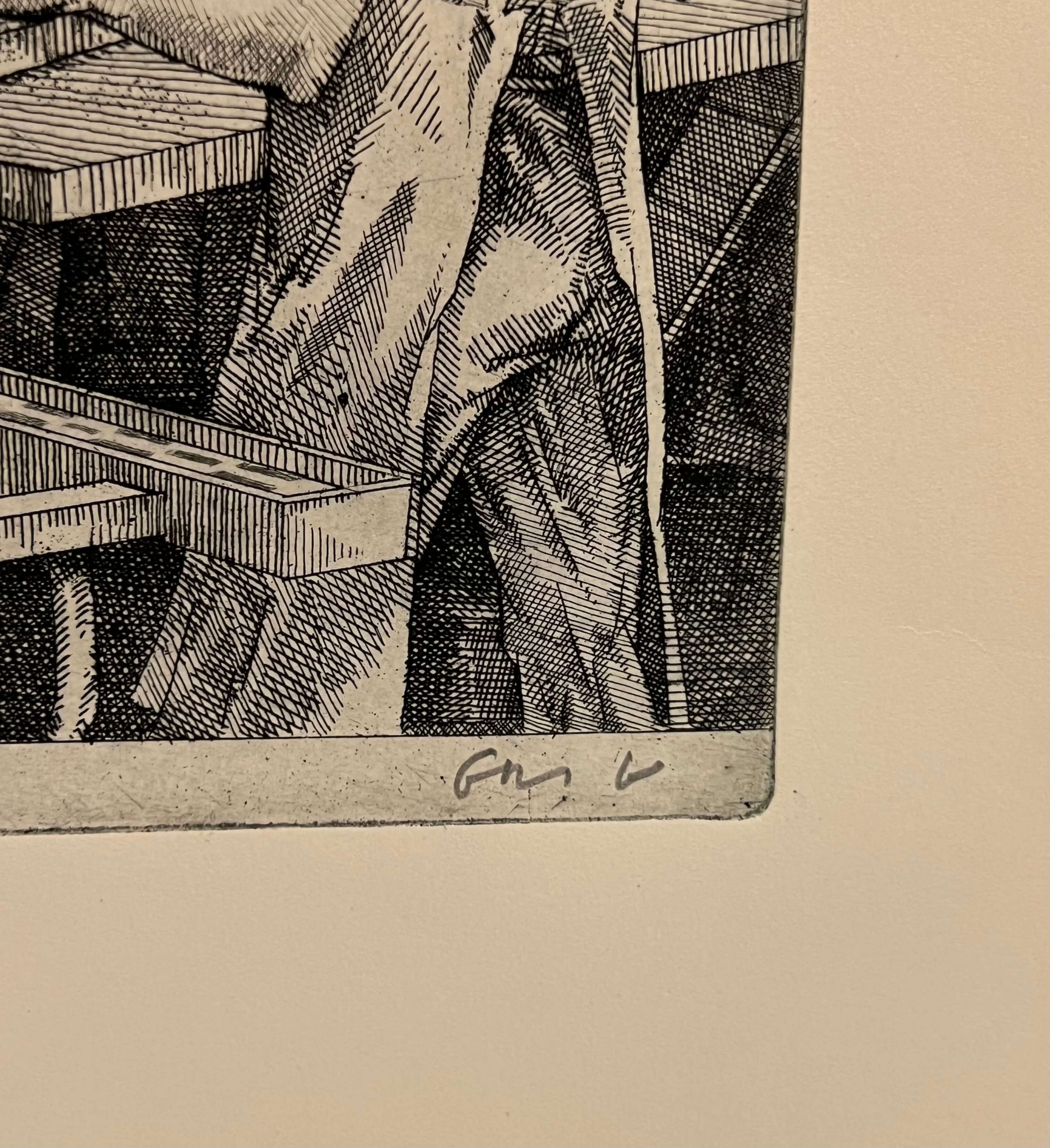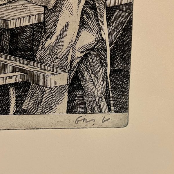 Igényesen elkészített fekete-fehér rézkarc munka kartonon Gacs Gábor (1930-2019) híres magyar grafikustól, amely csak egy hozzáillő keretezésre vár. Igazi gyűjtői darab!