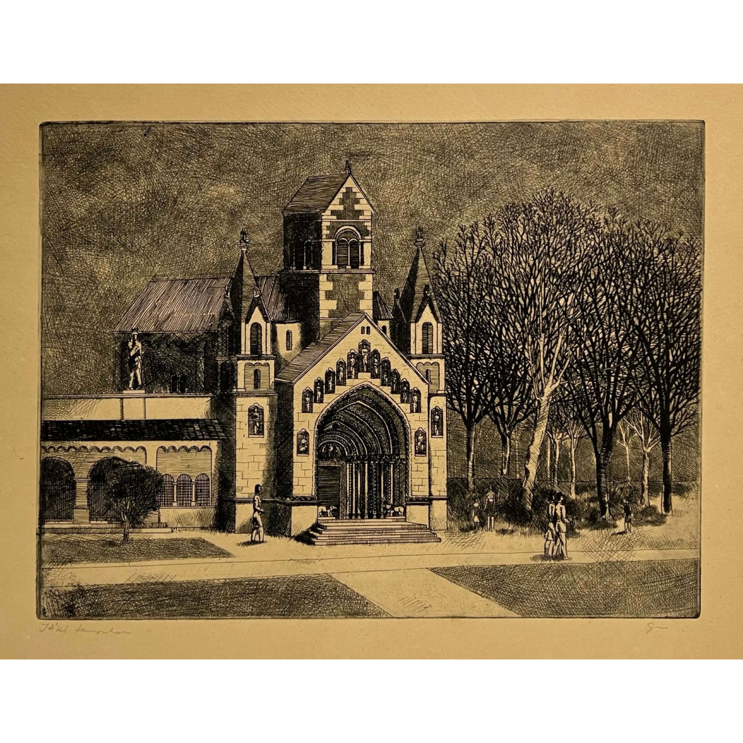 Nagyon igényesen elkészített, a Jáki Templomot megörökítő rézkarc munka Gacs Gábor (1930-2019) híres magyar művésztől, amely csak egy hozzáillő, paszpartus keretezésre és egy gyűjtőre vár.