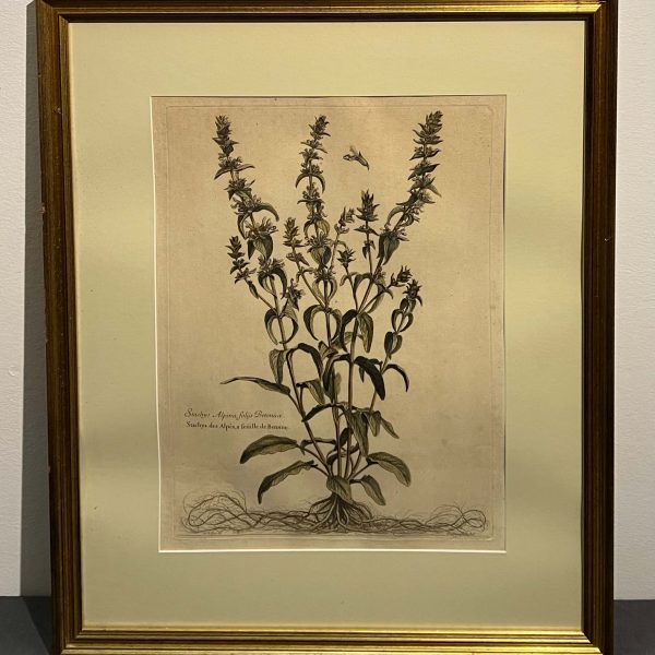 Régi, szépen elkészített, gyógynövényt ábrázoló grafikai alkotás szépen keretezve (üvegezve és paszpartuzva), azonnal falra akasztható állapotban. Münchenből való a kép.