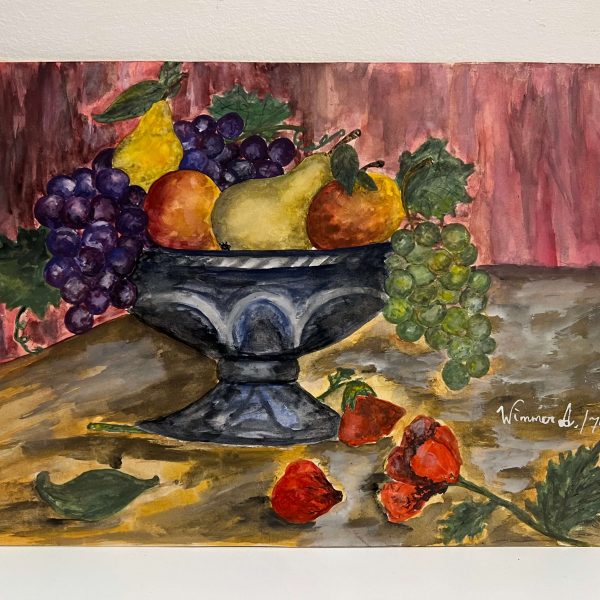 Gyönyörű színekkel megfestett gyümölcs csendélet 1974-ből Nyugat-Európából, amely keretezést követően gyönyörű lakásdísszé válik! A művész beazonosítása folyamatban van.