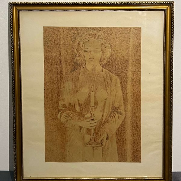Szépen megrajzolt grafikai alkotás ismeretlen művésztől üvegezett, antik keretben, azonnal falra akasztható állapotban.