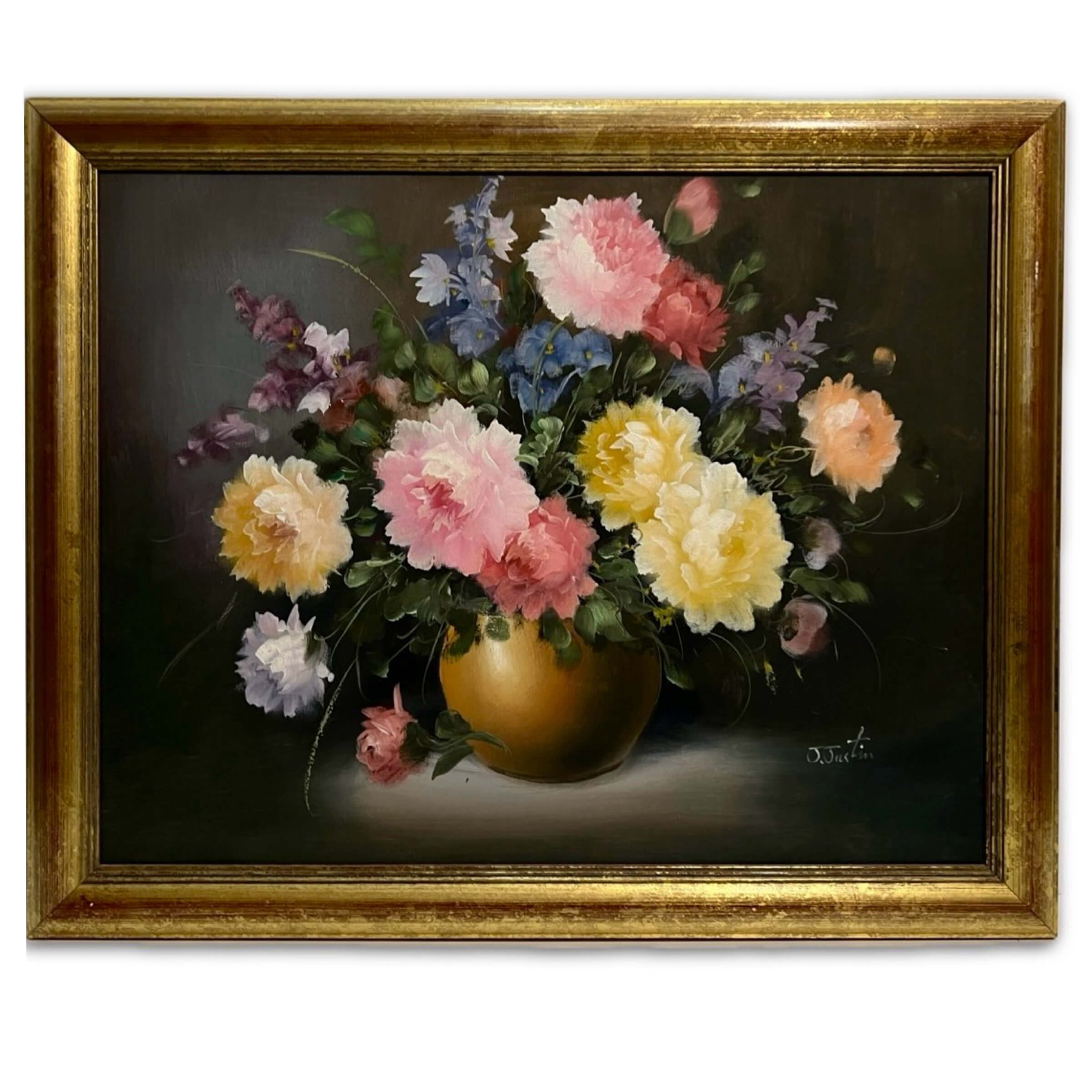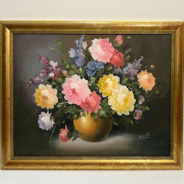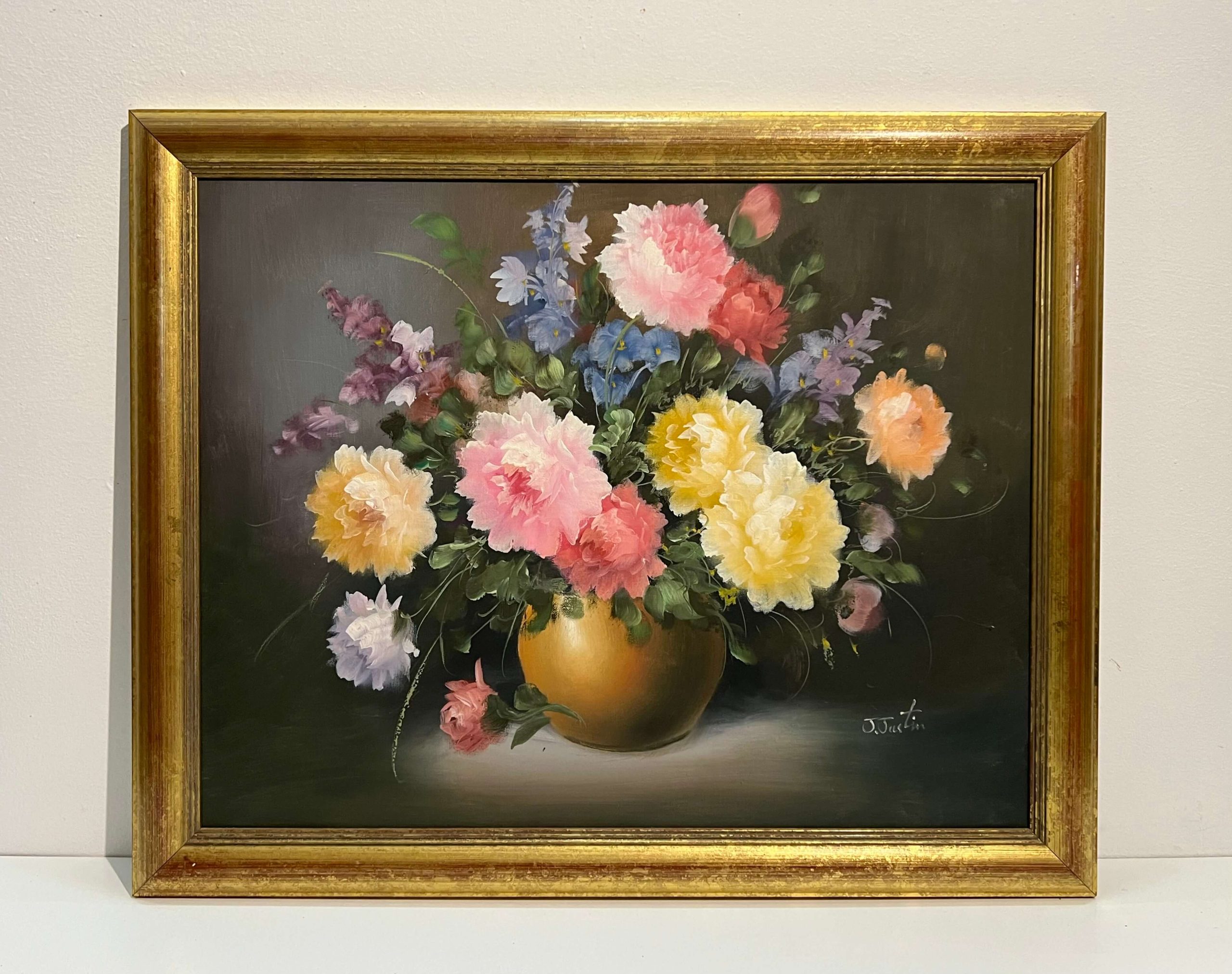 Gyönyörű virágcsendélet alkotás nagyon szépen keretezve, azonnal falra akasztható állapotban. A művész beazonosítása folyamatban van!