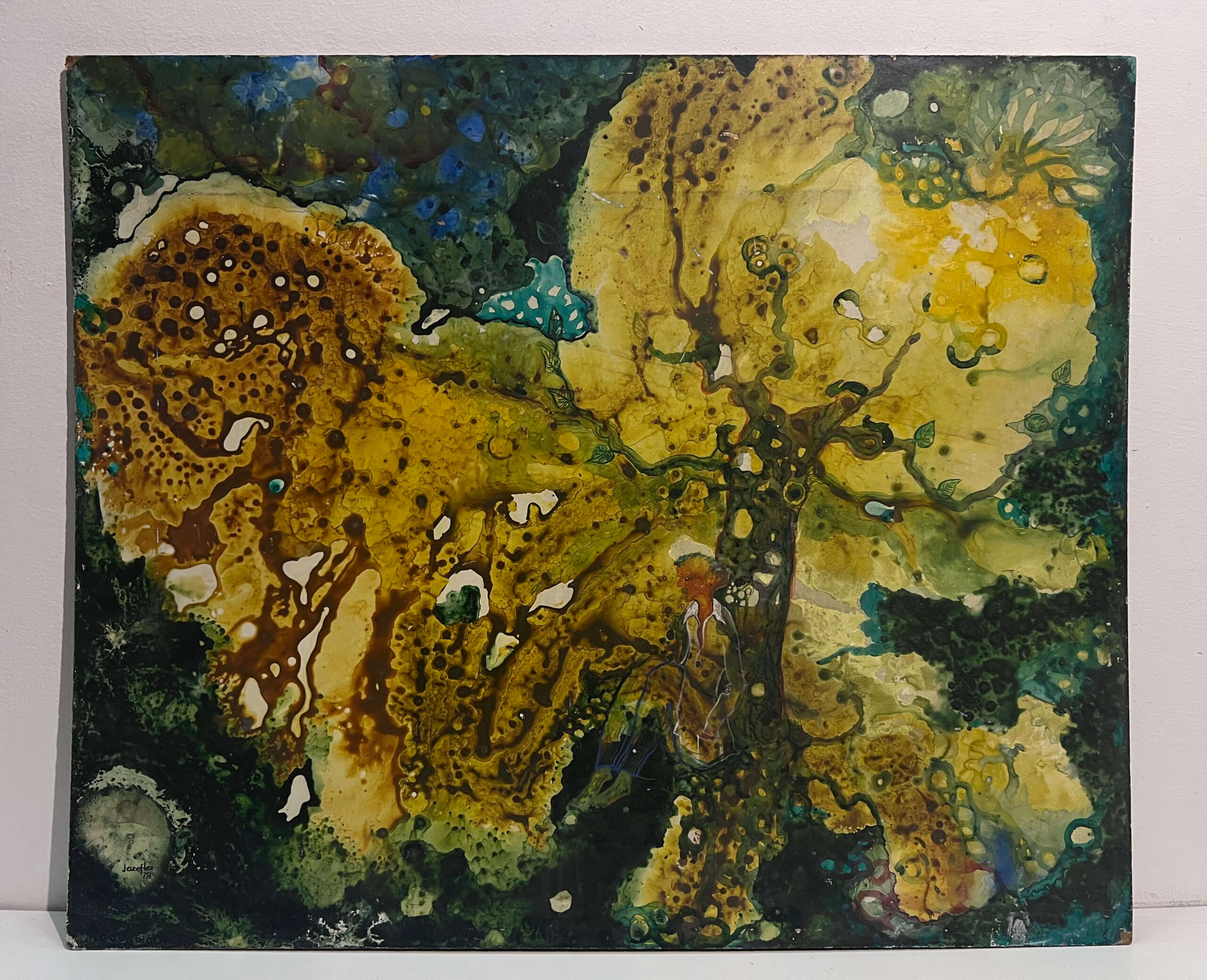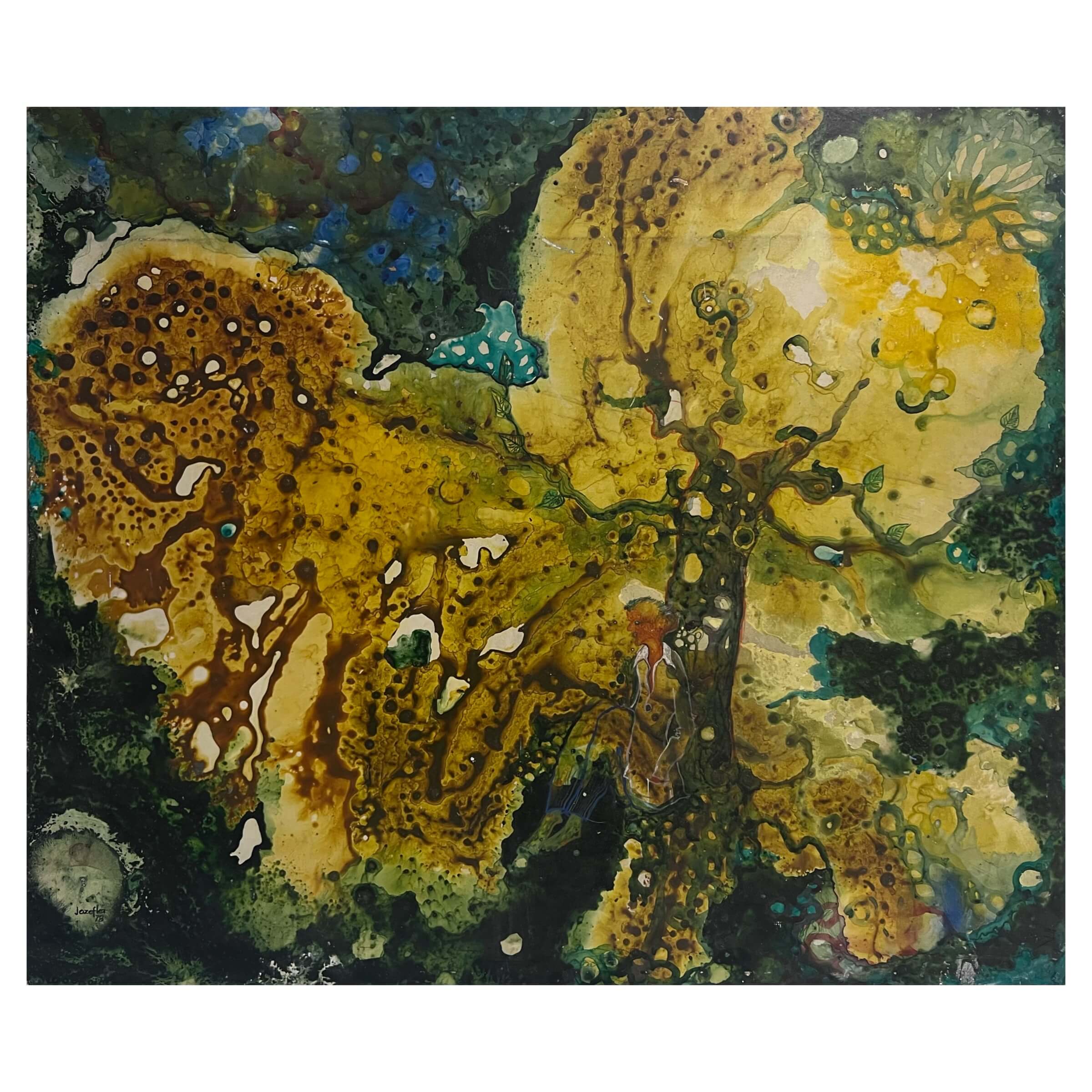 Nagyon különleges, absztrakt jellegű modern alkotás Jozefka Antal (1935- ) kortárs magyar festőművésztől a rá jellemző technikával és stílusban elkészítve, amely egy hozzáillő keretezést igényel.