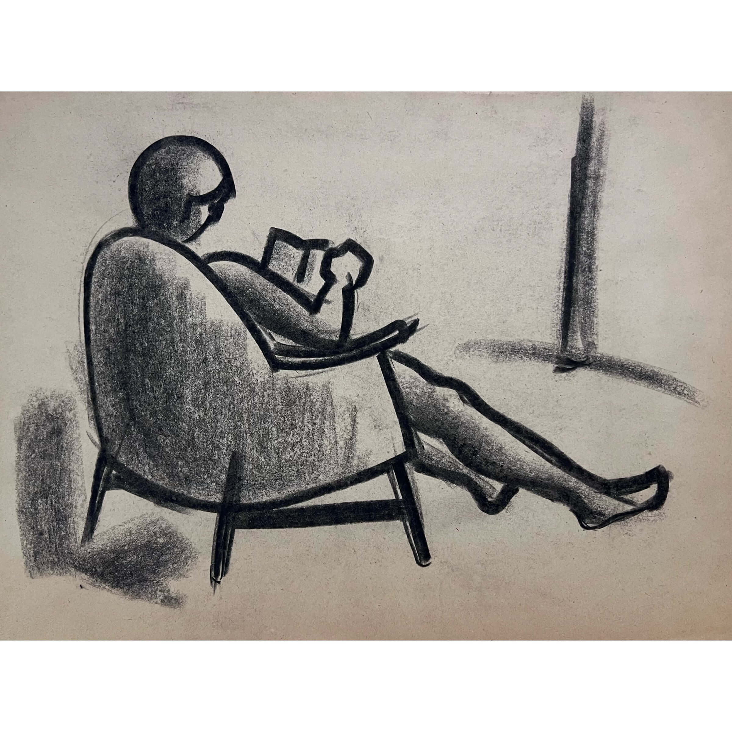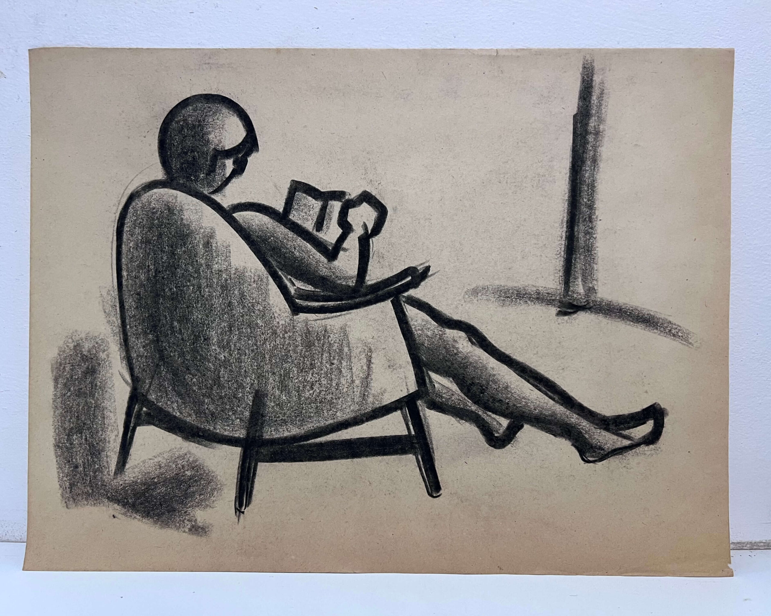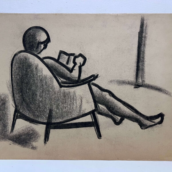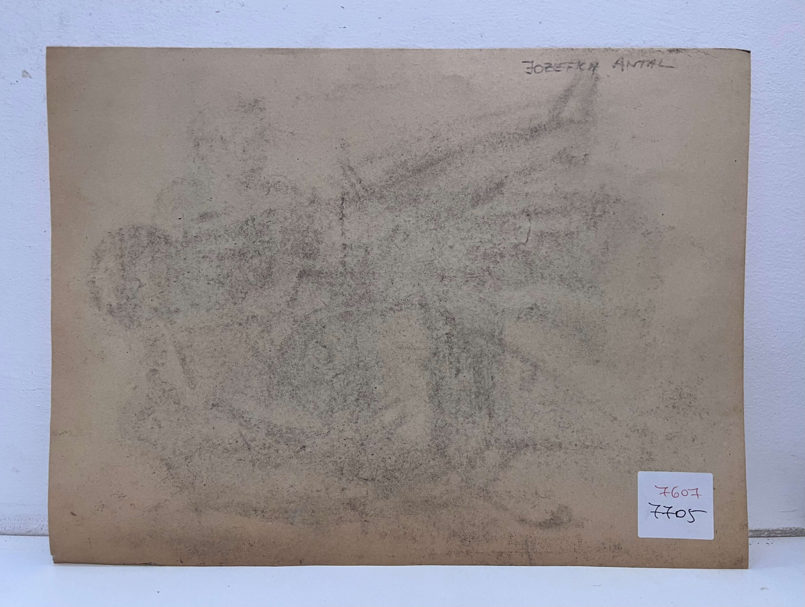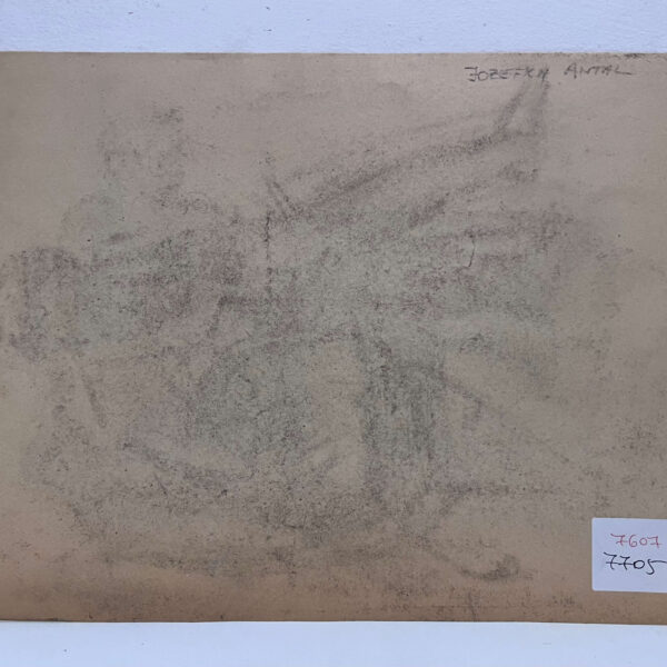 Retró hangulatú életkép ábrázolás, szénrajz Jozefka Antal (1935- ) kortárs magyar festőművésztől, amely egy hozzáillő keretezést igényel.