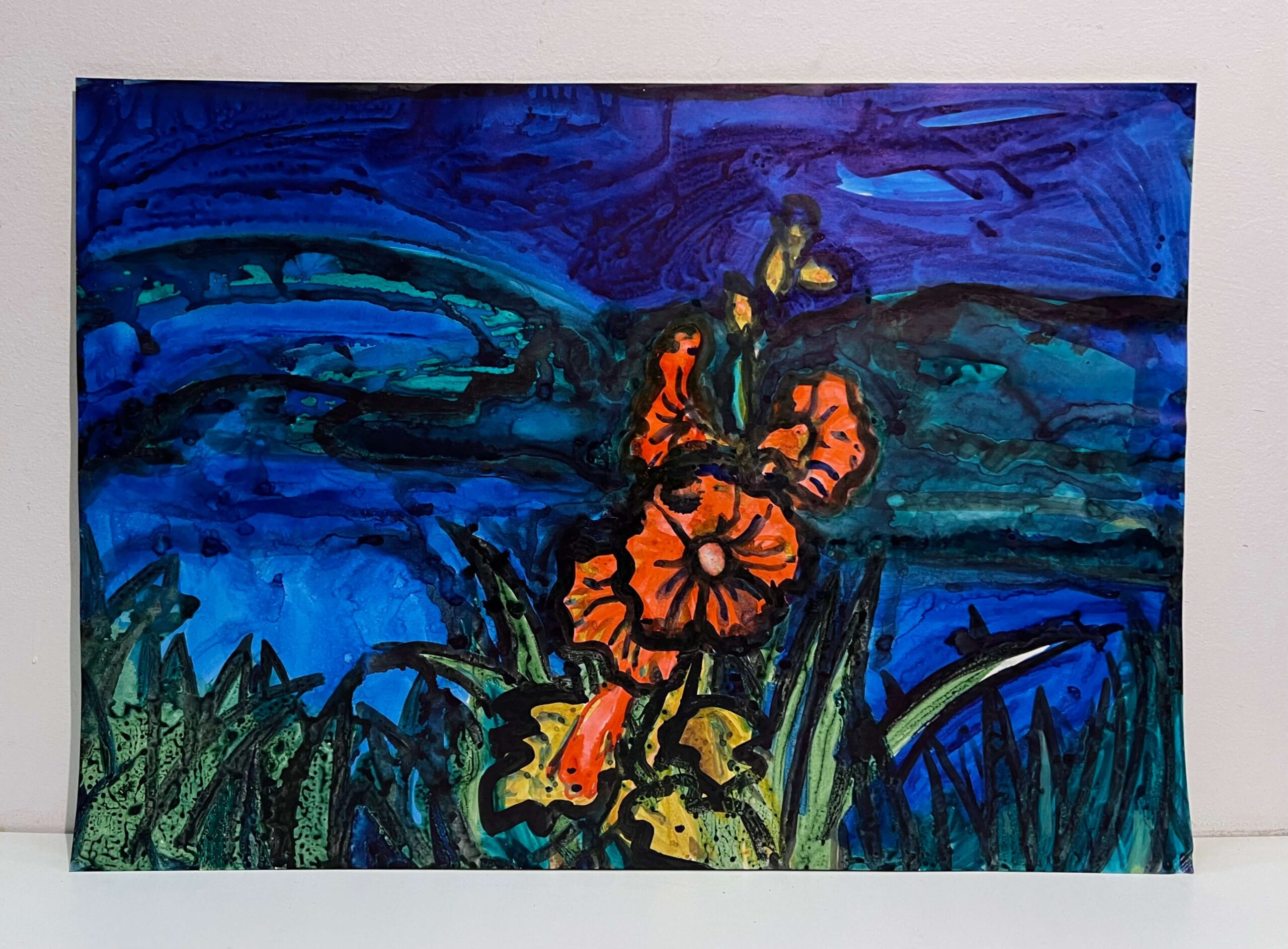Jó színvilágú vízparti természetkép Jozefka Antal (1935- ) kortárs magyar festőművésztől a rá jellemző technikával elkészítve, amely egy hozzáillő keretezést igényel.