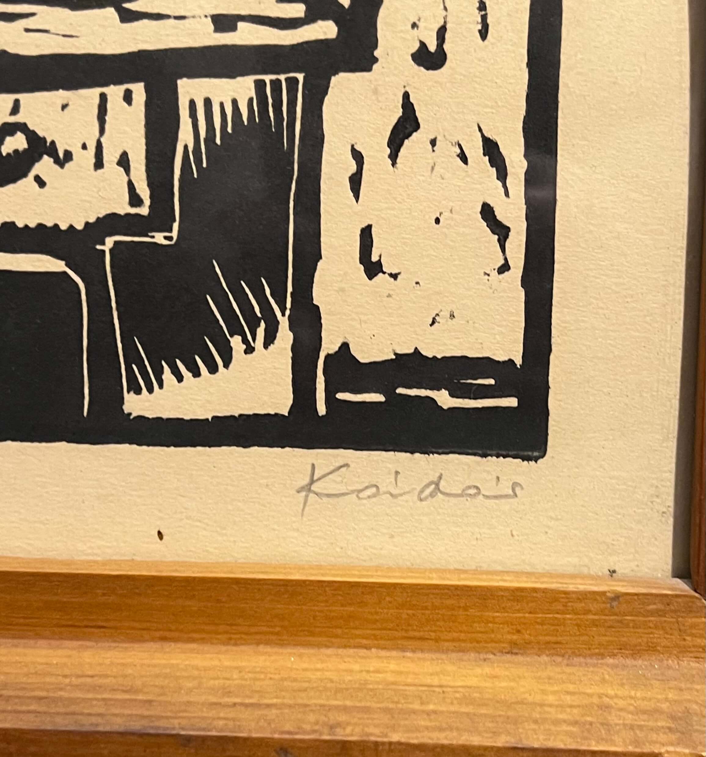 Művészien elkészített grafikai alkotás, csendélet Kádár György (1912-2002) Kossuth-díjas magyar művésztől eredeti, üvegezett keretében.