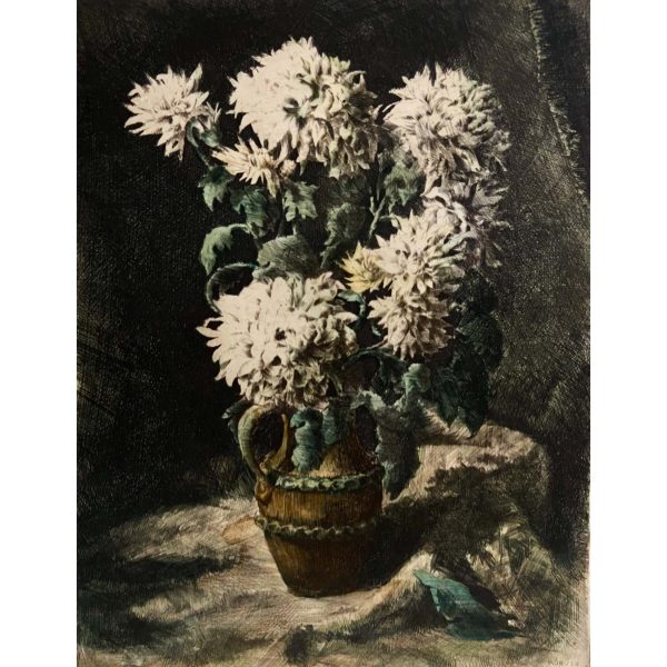 Fehér őszirózsák kancsóban