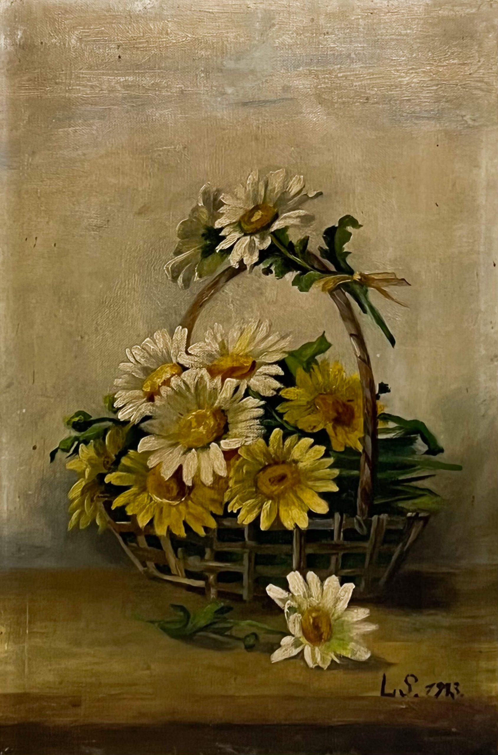 Virágkosár margarétákkal