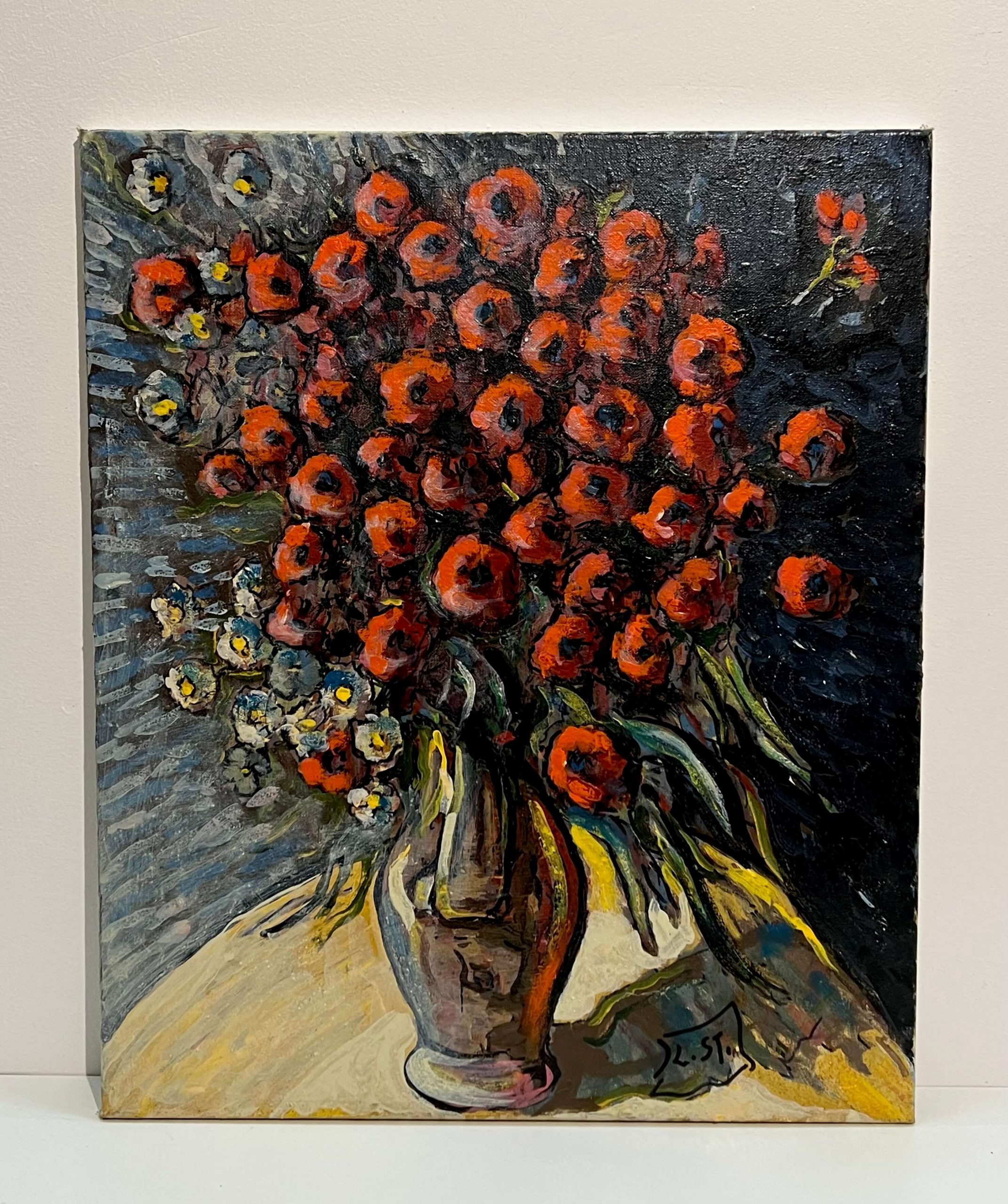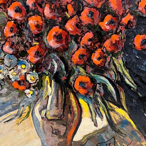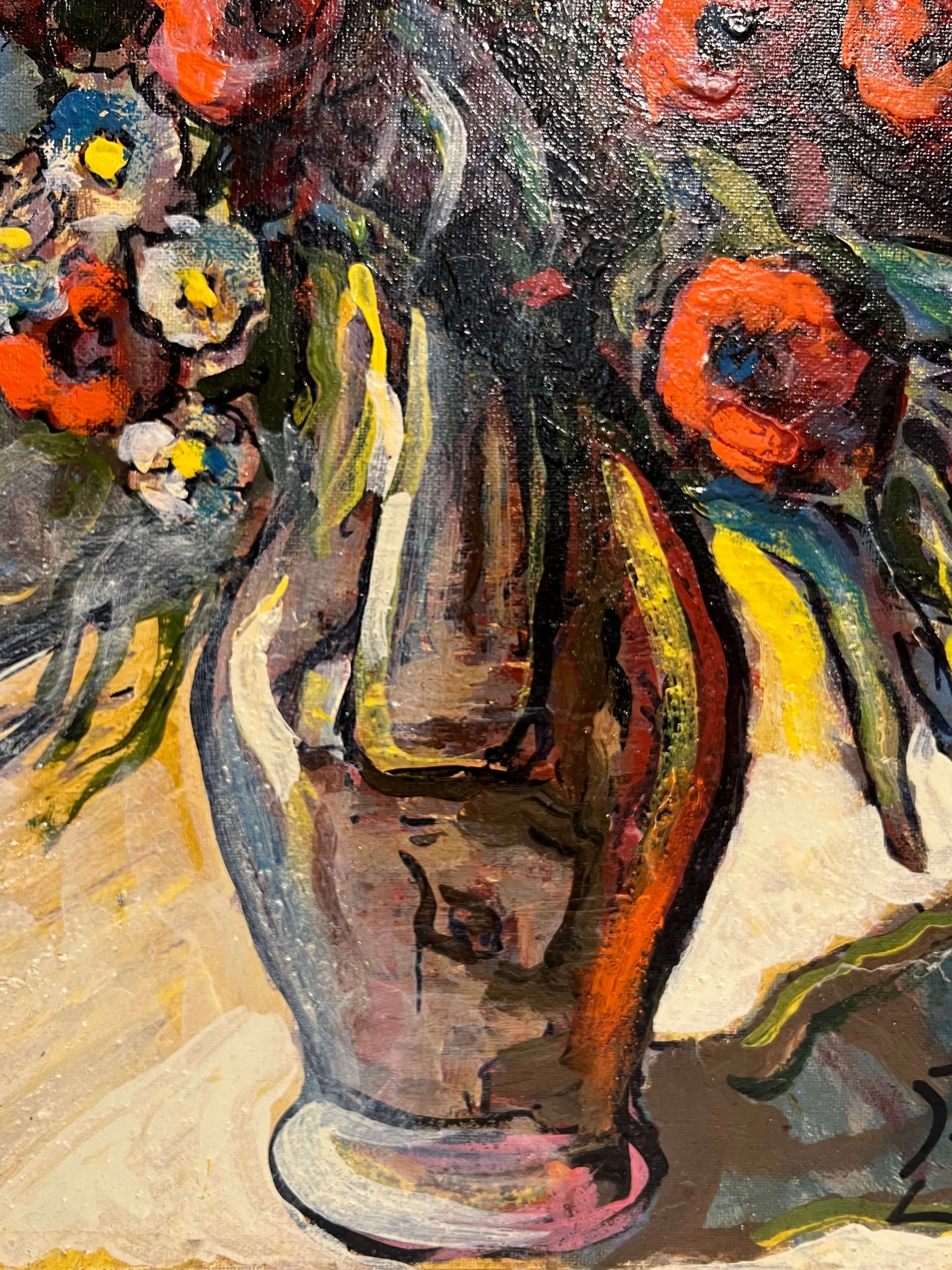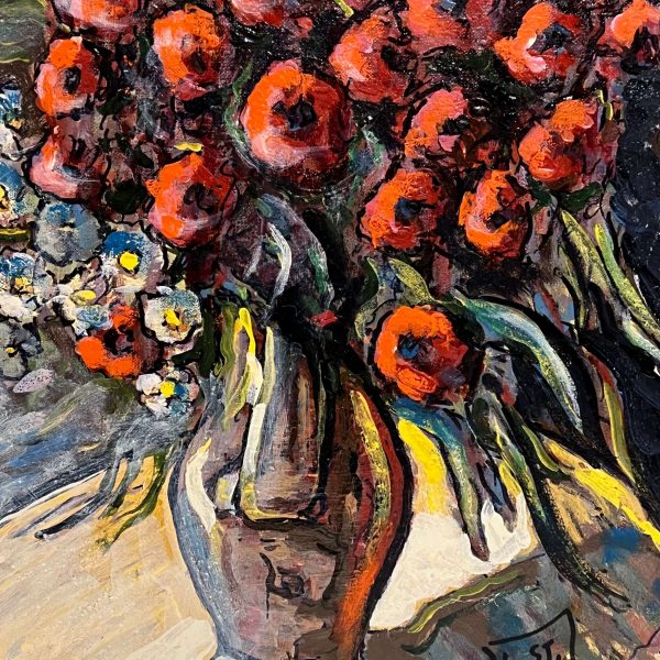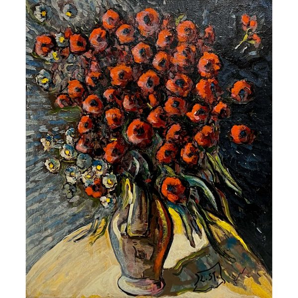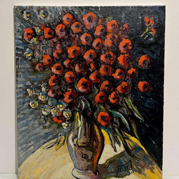 Gyönyörű virágcsendélet alkotás, amely keretezést követően azonnal falra is akasztható! A művész beazonosítása folyamatban van!