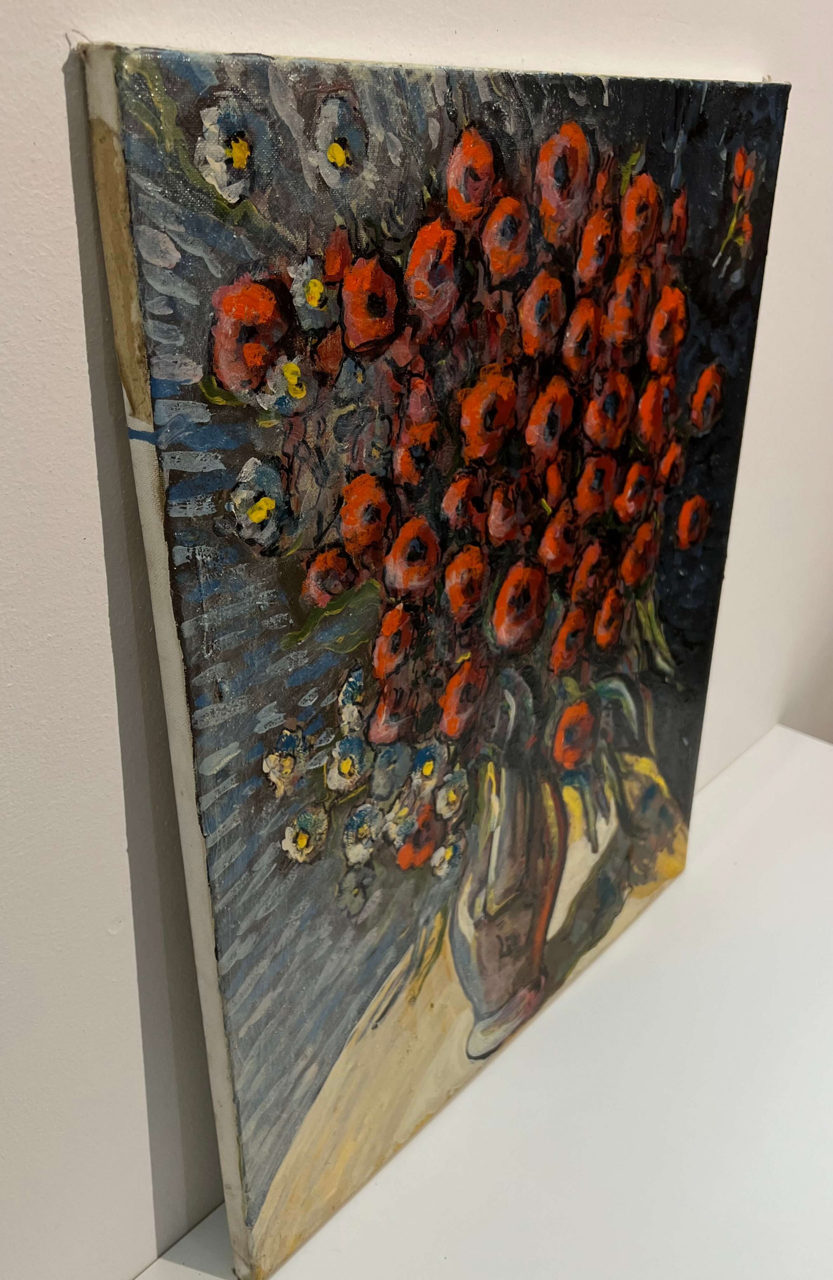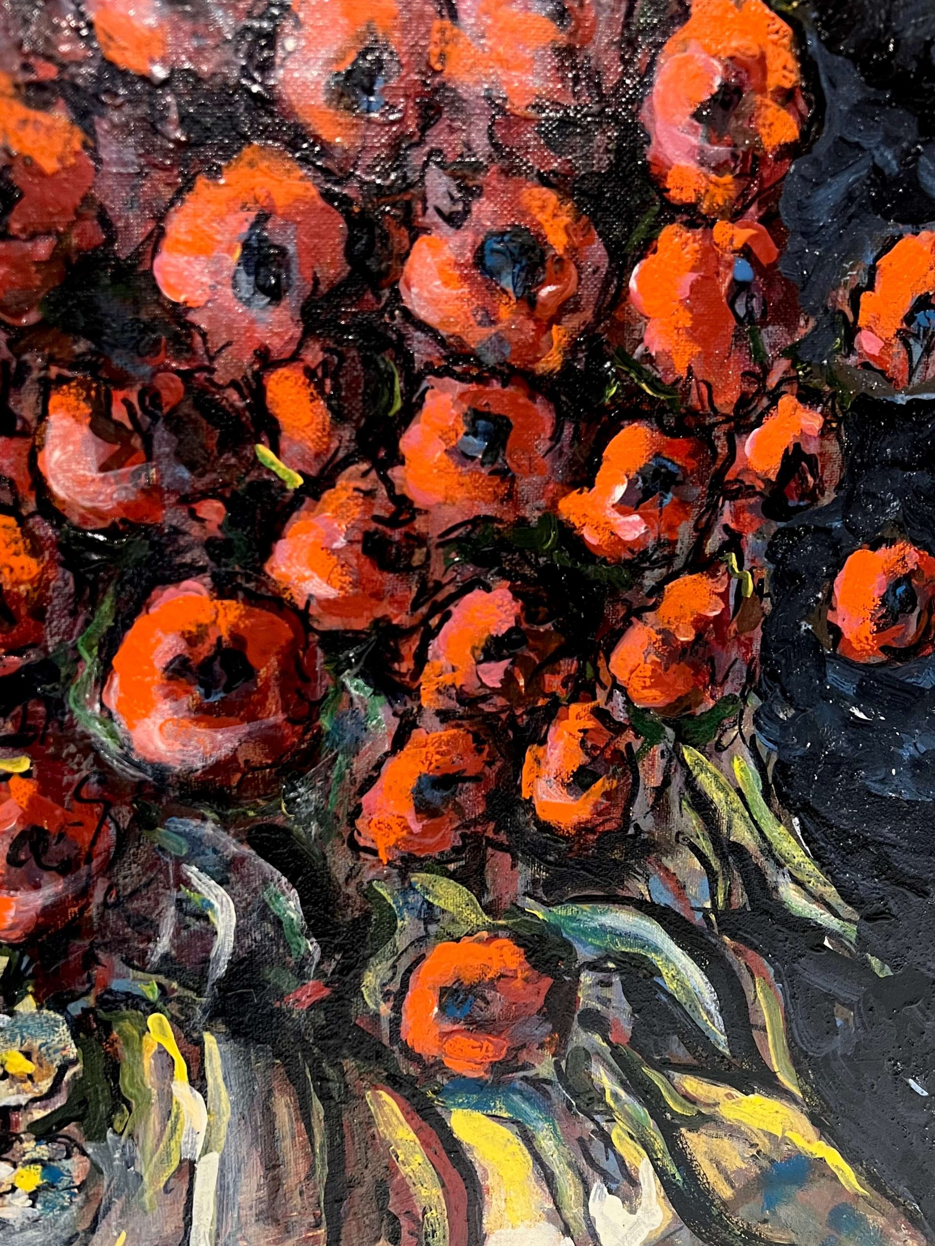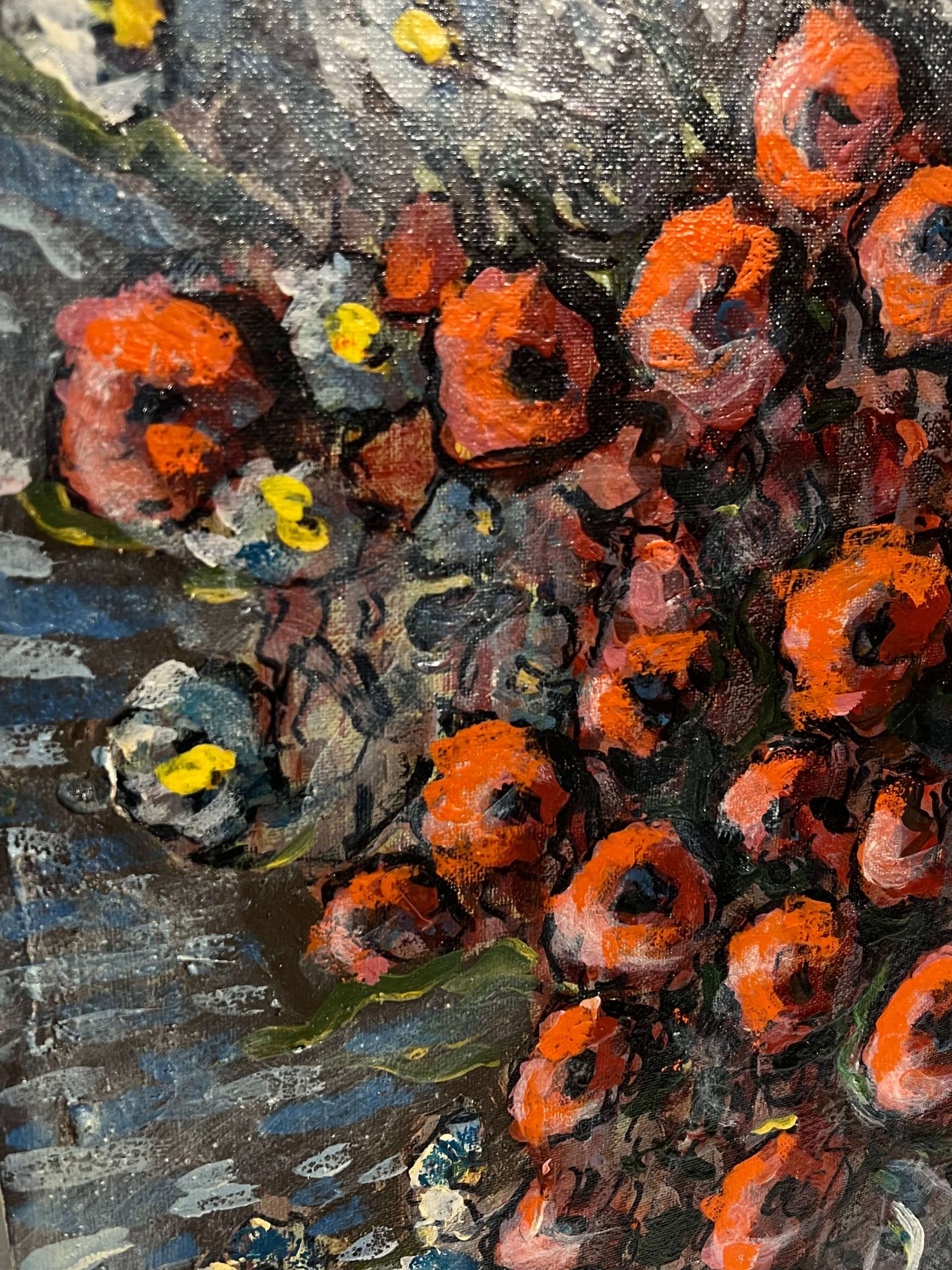 Gyönyörű virágcsendélet alkotás, amely keretezést követően azonnal falra is akasztható! A művész beazonosítása folyamatban van!