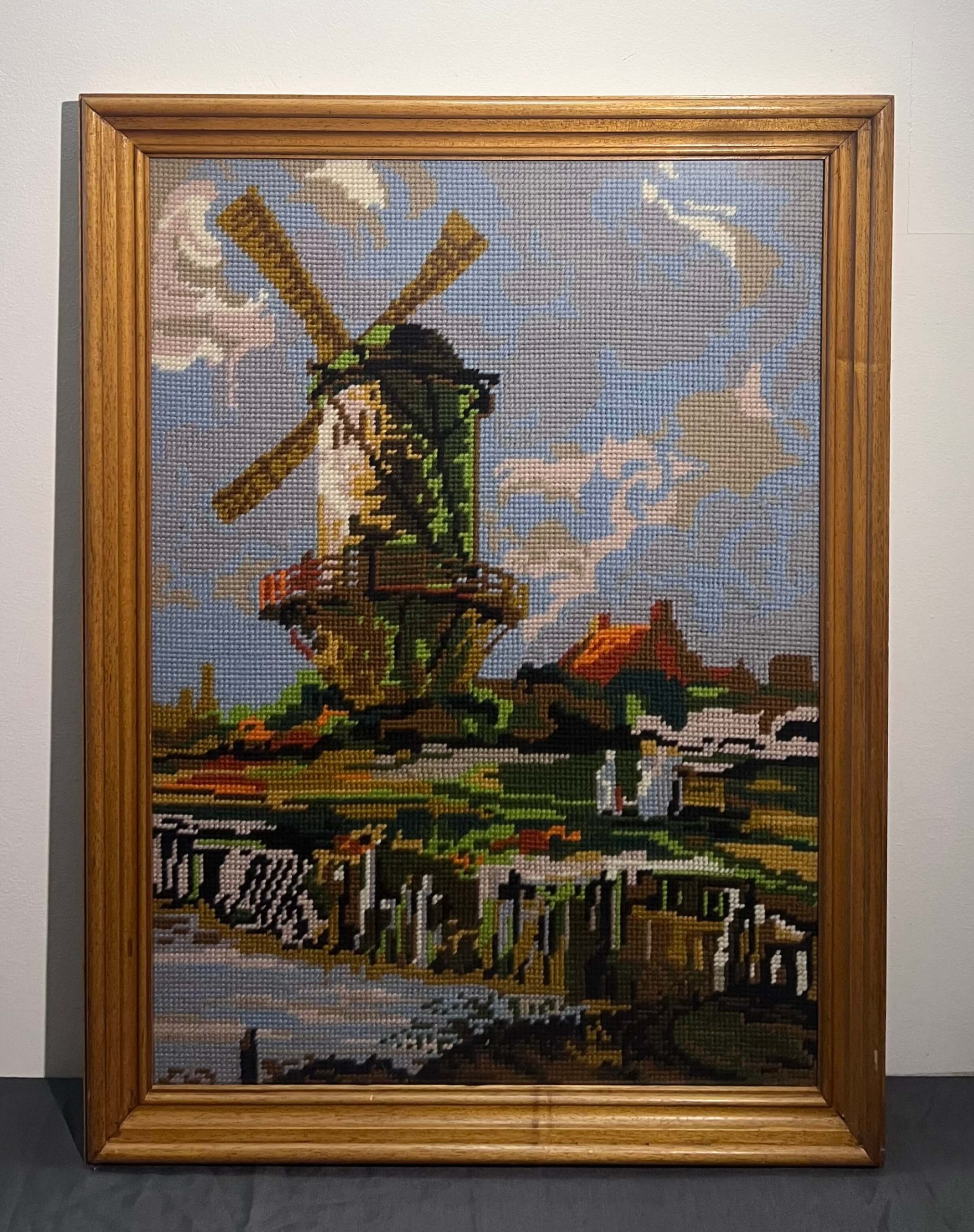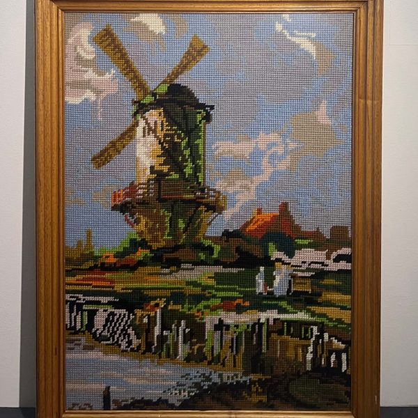 Hímzés. Nagy méretű, szépen elkészített gobelin munka Nyugat-Európából üvegezett keretben, azonnal falra akasztható állapotban.