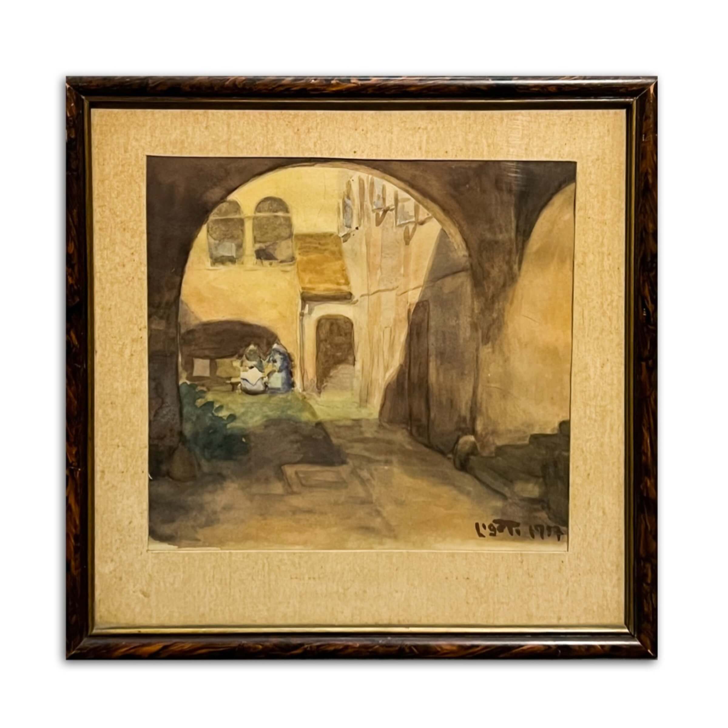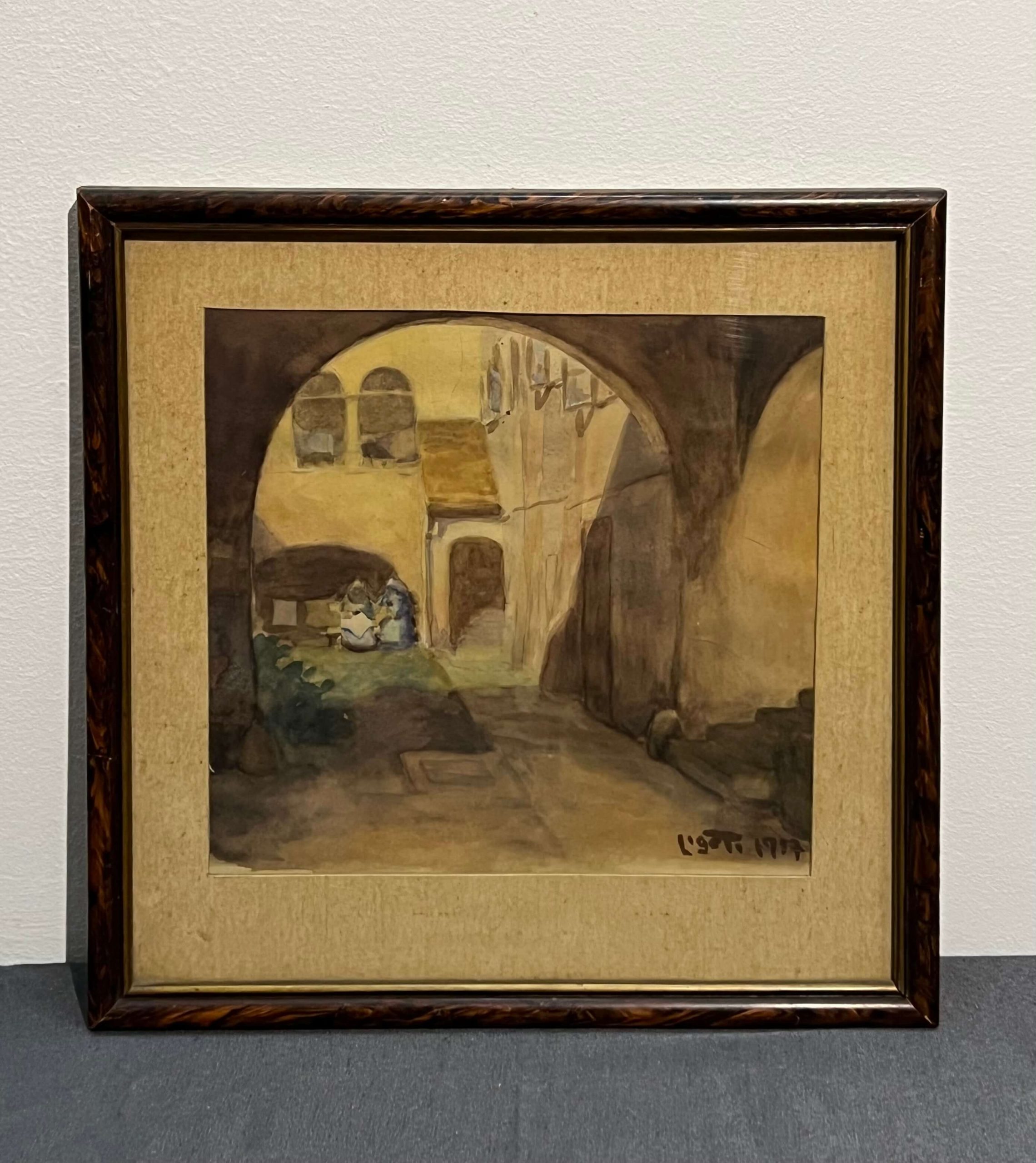 Nagyon igényes akvarell alkotás magyar művésztől 1957-ből, amely a szemlélőt visszarepíti a múltba. Szép, hozzáillő üvegezett keretben, paszpartuzva, azonnal falra akasztható állapotban várja gyűjtőjét! A művész beazonosítása folyamatban van!